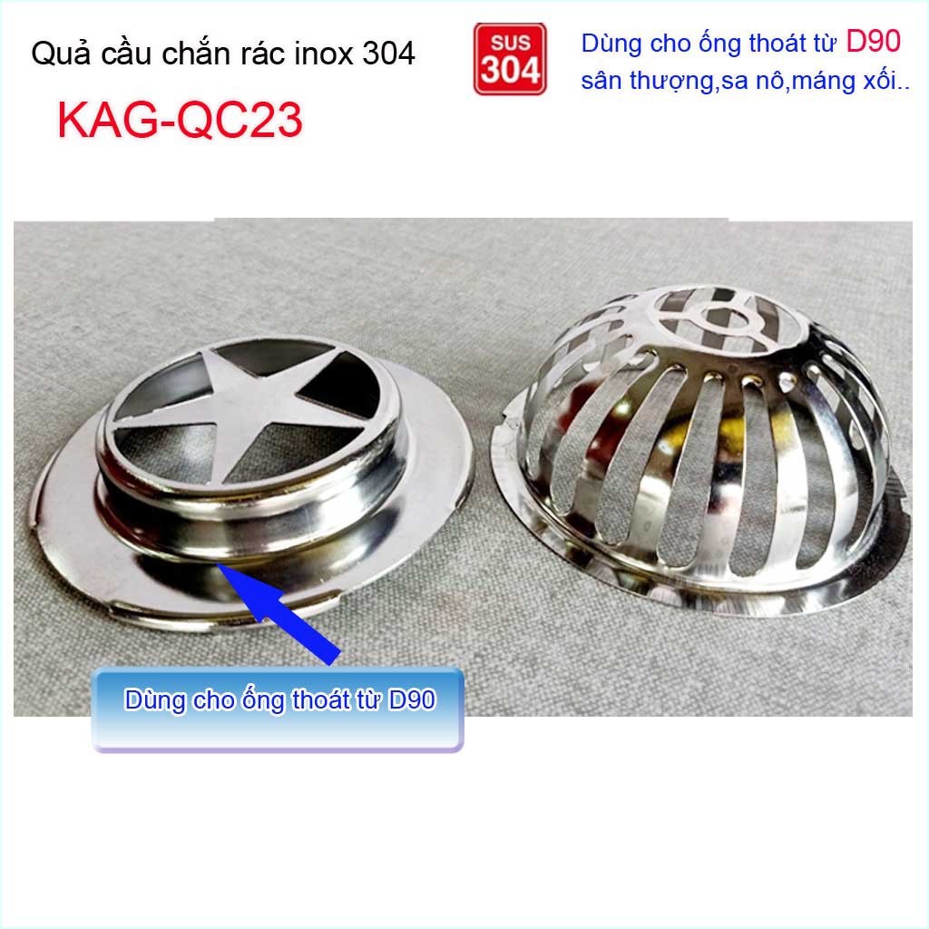 Giới thiệu Cầu chắn rác sân thượng D90 KAG-QC23 inox SUS304, cầu chặn rác đặt miệng ống D90 thoát nước mưa thoát nhanh