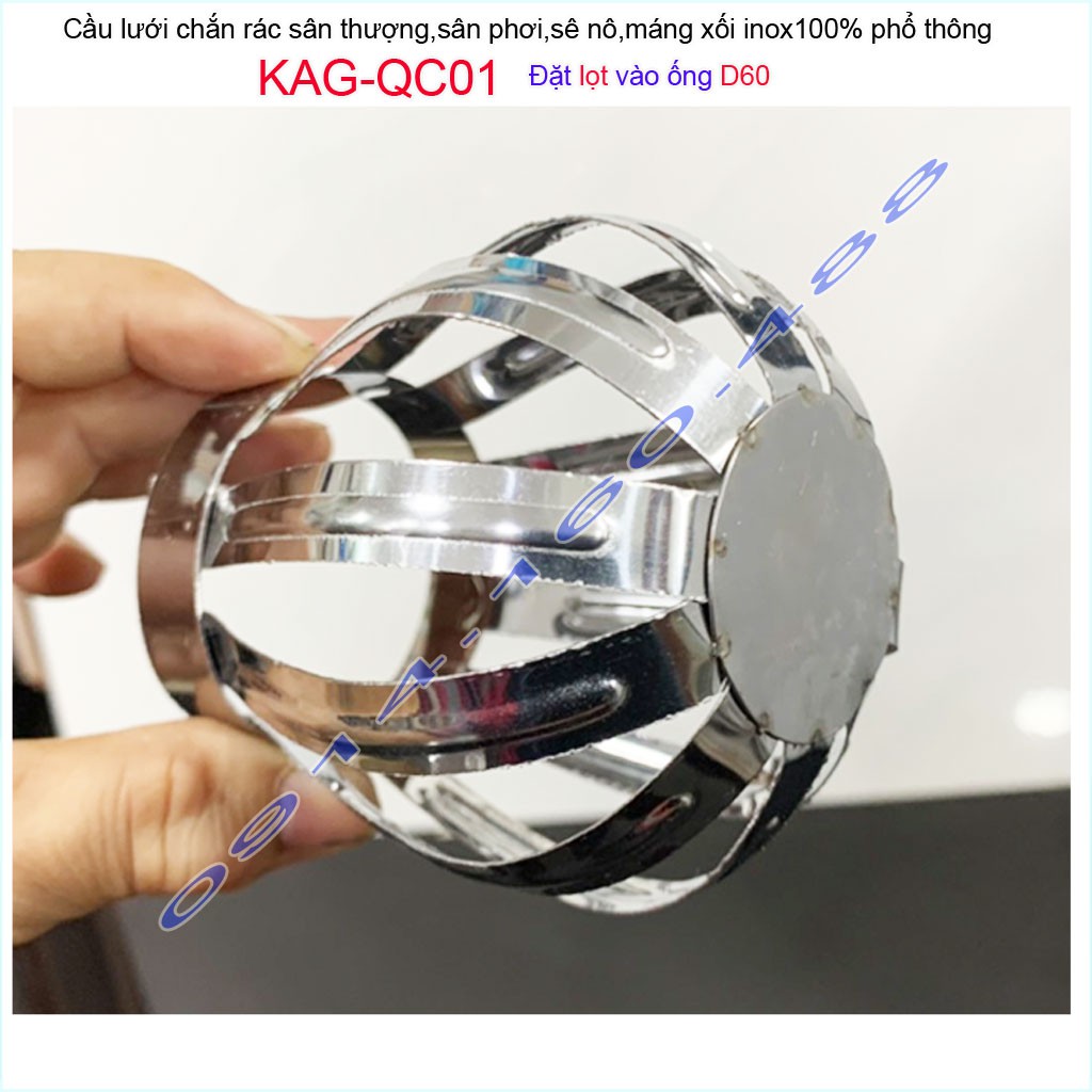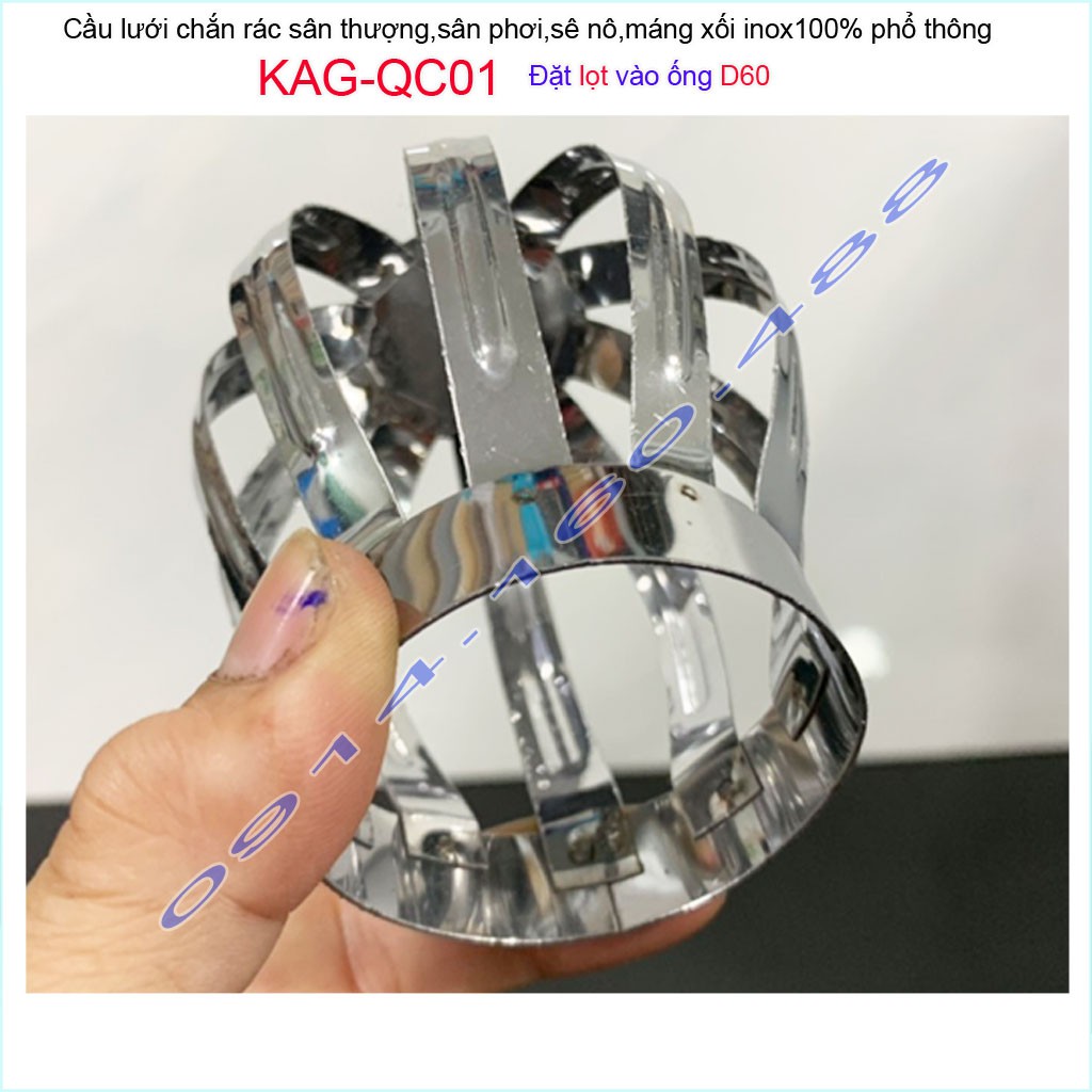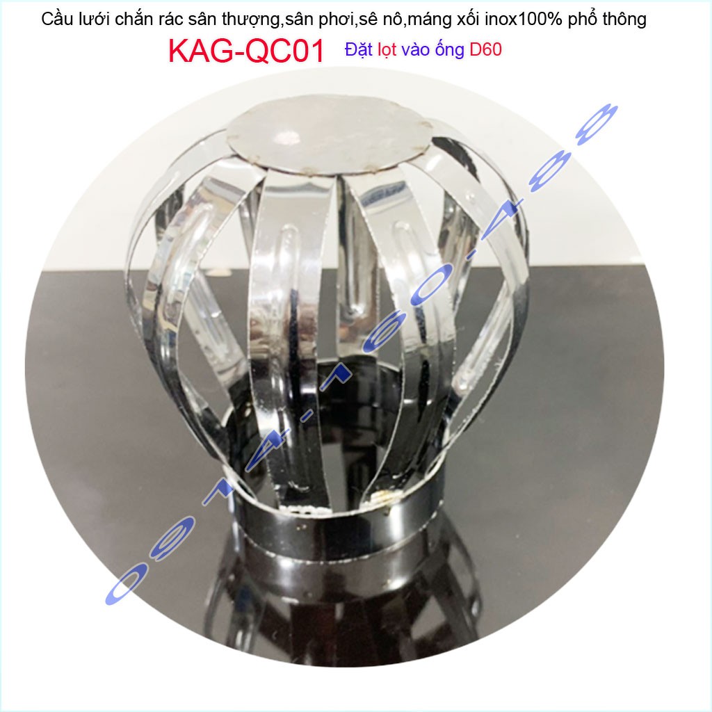 Cầu chặn rác sân thượng inox, cầu chắn rác D60 KAG-QC01 dùng thả vào ống thoát nước đường kính 6cm (60mm)