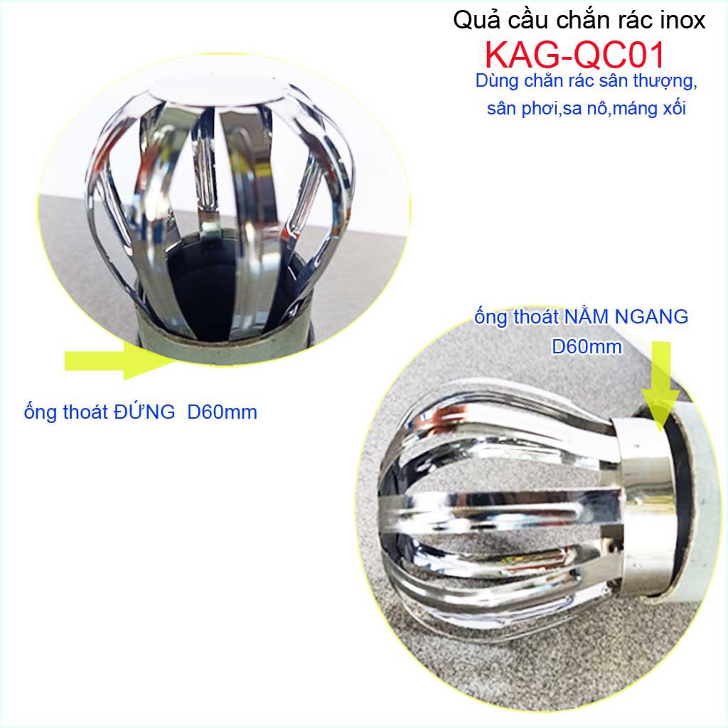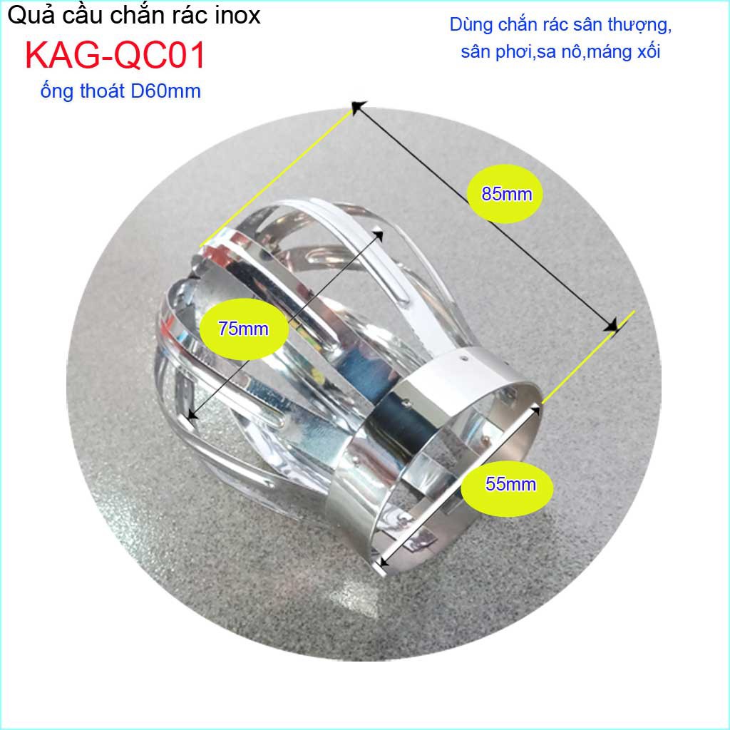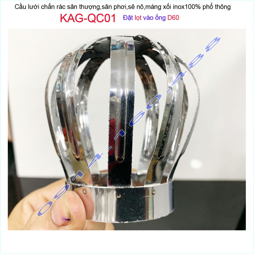 Cầu chặn rác sân thượng inox, cầu chắn rác D60 KAG-QC01 dùng thả vào ống thoát nước đường kính 6cm (60mm)