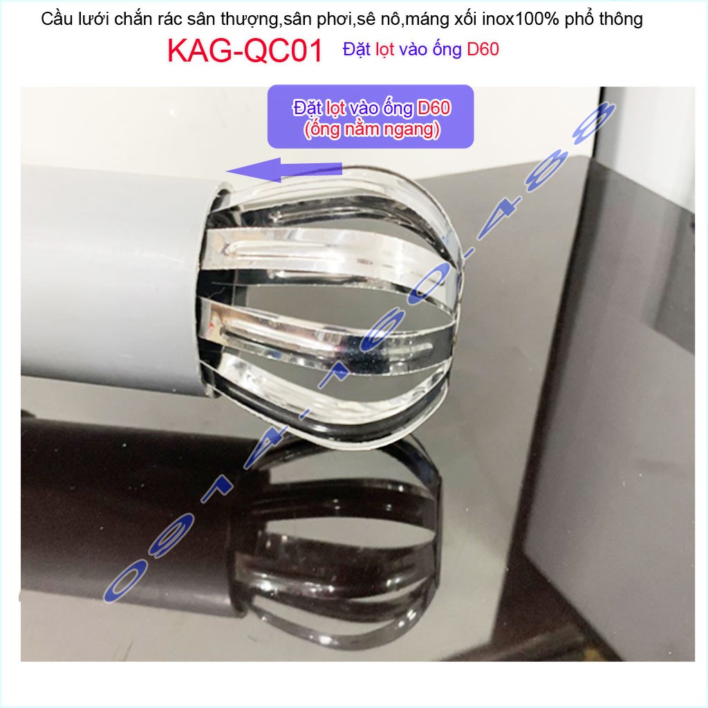 Cầu chặn rác sân thượng inox D60 KAG-QC01, cầu chắn rác ống thoát ngang