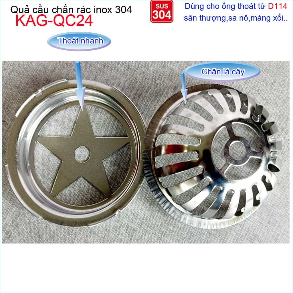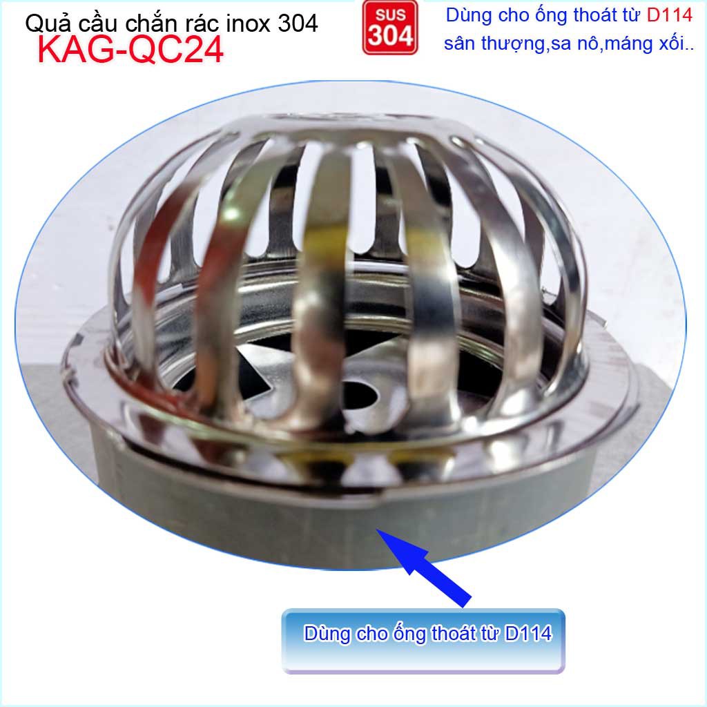 Cầu chắn rác sân thượng D114 KAG-QC24 inox SUS304, cầu chặn rác đặt miệng ống D114 thoát nước mưa thoát nhanh