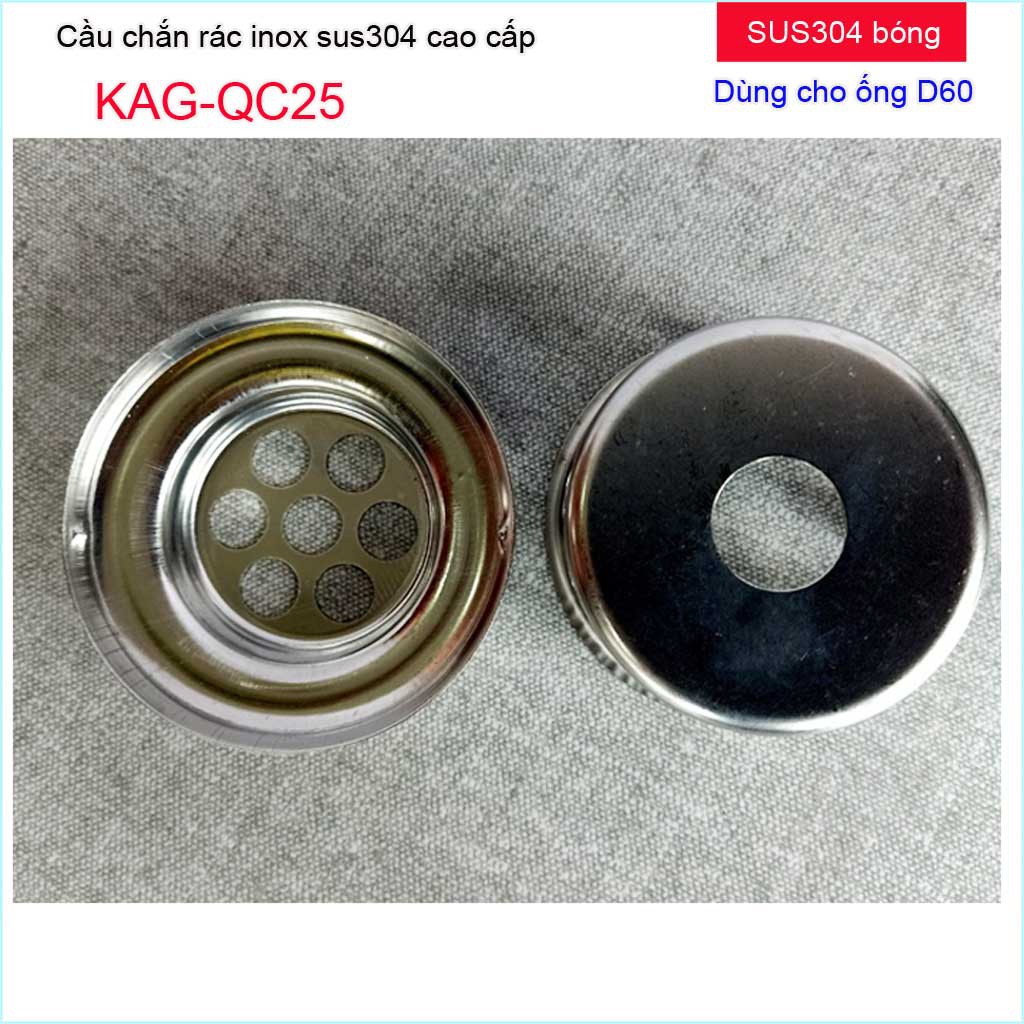Cầu chắn rác sân thượng inox SUS304, cầu chắn rác, cầu thoát nước mưa D60 KAG-QC25 dùng cho ống thoát nước đường kính 6cm(60mm). Lắp trực tiếp vào ống thoát nước