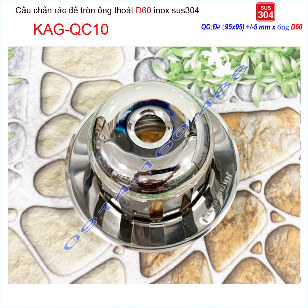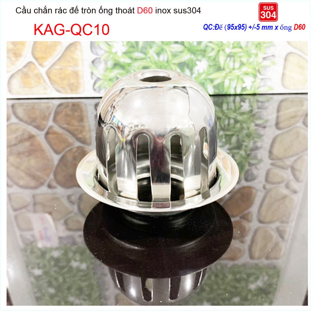 Cầu chắn rác sân thượng KAG-QC10 inox SUS304, cầu chặn rác đặt miệng ống D60 thoát nước nhanh inox bóng sử dụng tốt