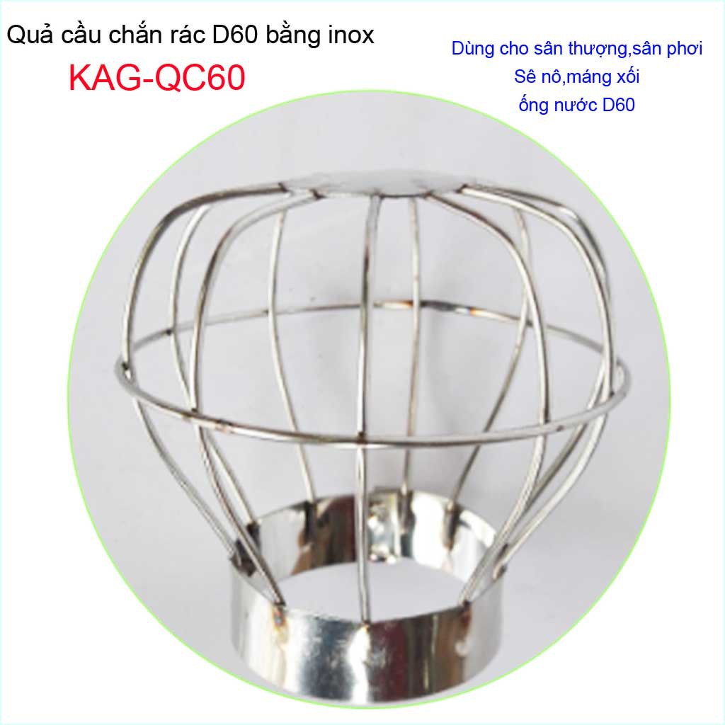 Cầu chặn rác sân thượng inox, cầu chắn rác D60 KAG-QC60 dùng thả vào ống thoát nước đường kính 6cm (60mm)