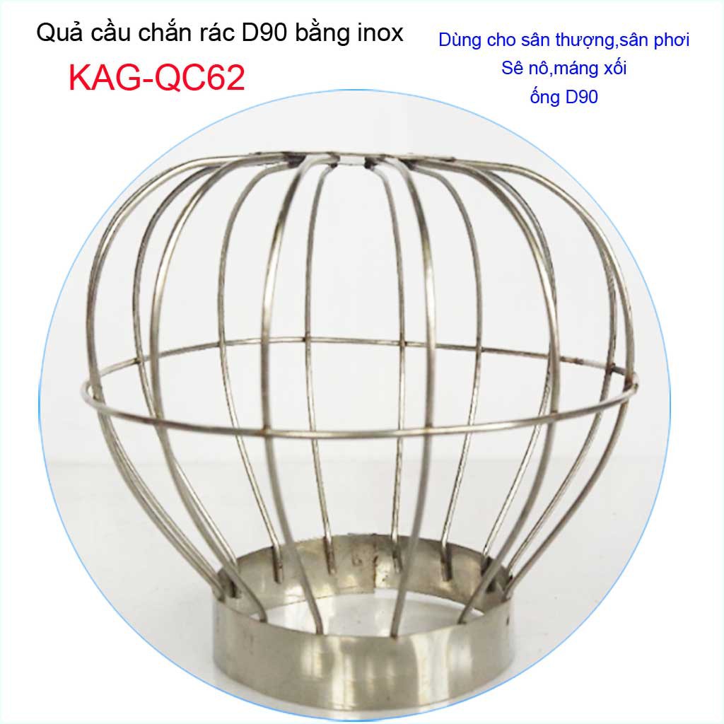 Cầu chặn rác sân thượng inox, cầu chắn rác D90 KAG-QC62 dùng thả vào ống thoát nước đường kính 9cm (90mm)