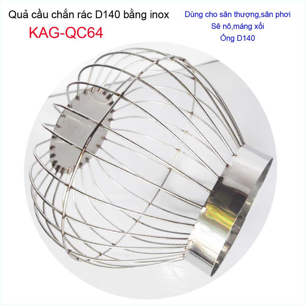 Cầu chặn rác sân thượng KAG-QC64, cầu chắn rác inox 201 thoát nước mưa thả ống D140 xả nhanh chặn rác tốtChất liệu: Cầu chặn rác sân thượng inox, cầu chắn rác D140 KAG-QC64 sản xuất Inox 201 Việt Nam