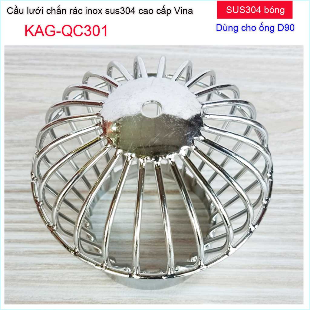 Cầu chắn rác sân thượng KAG-QC301 (ống D90), Cầu chặn rác Inox 304 đế thấp thả ống D90 cầu lưới lọc rác thoát nước mưa thoát nhanh sử dụng tốtChất liệu: Inox SUS304 Japan cao cấp, bền bỉ theo thời gian.
