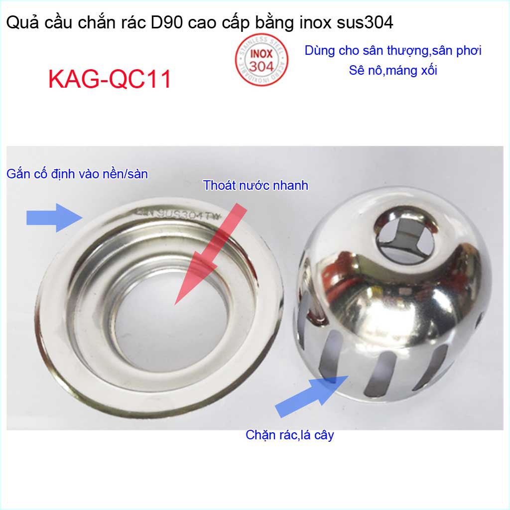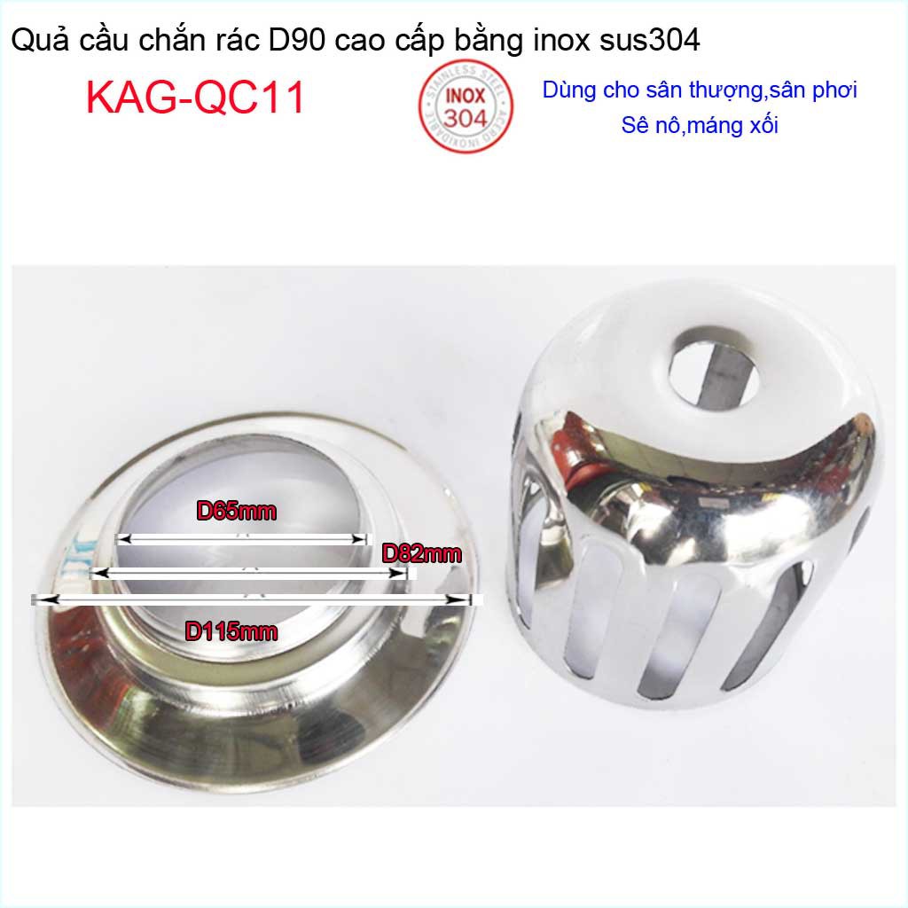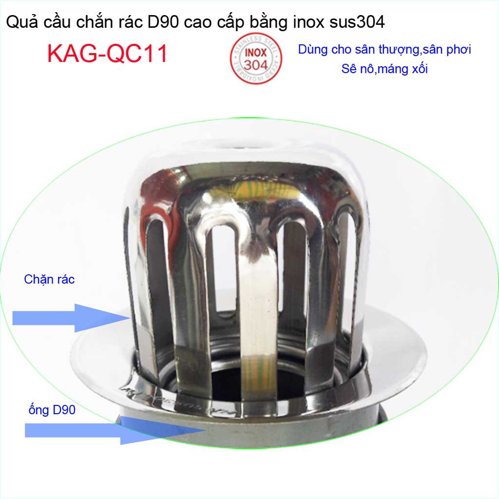 Cầu chắn rác sân thượng inox SUS304, cầu chắn rác D90 KAG-QC11 dùng cho ống thoát nước đường kính 9cm (90mm)