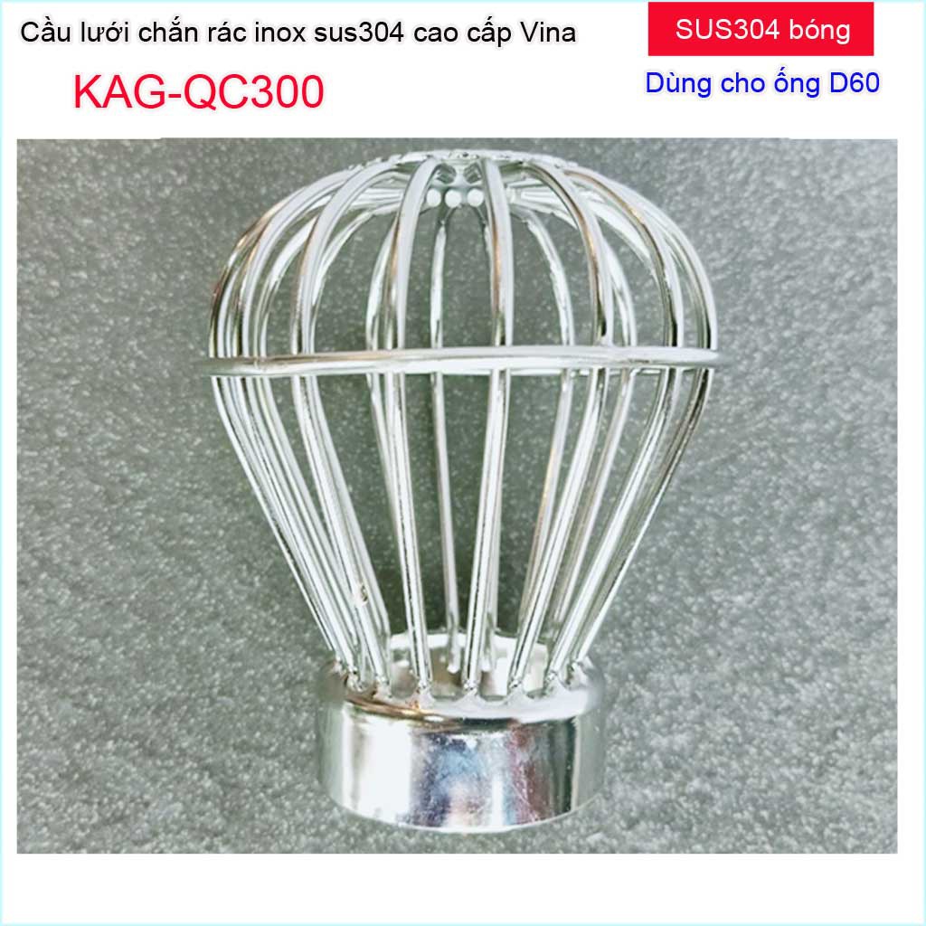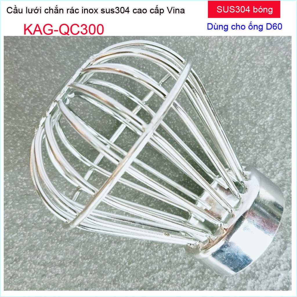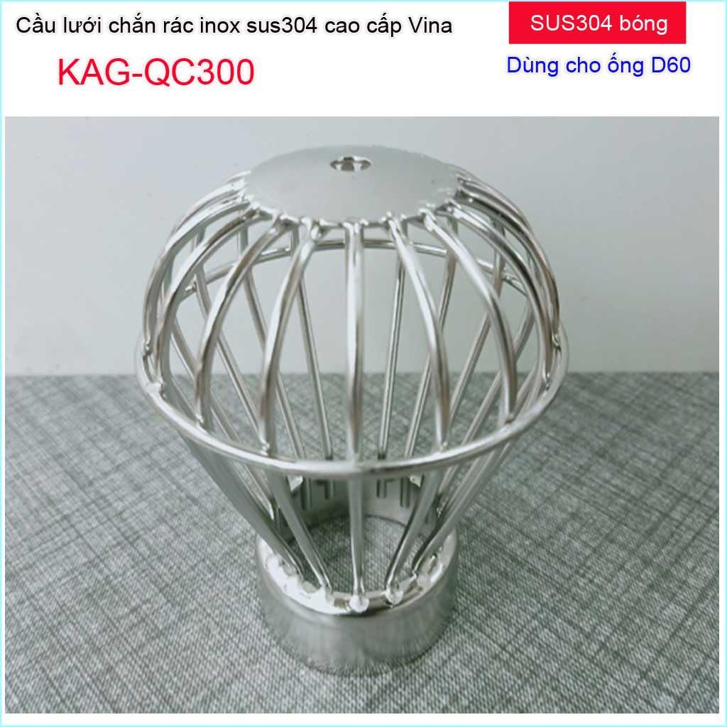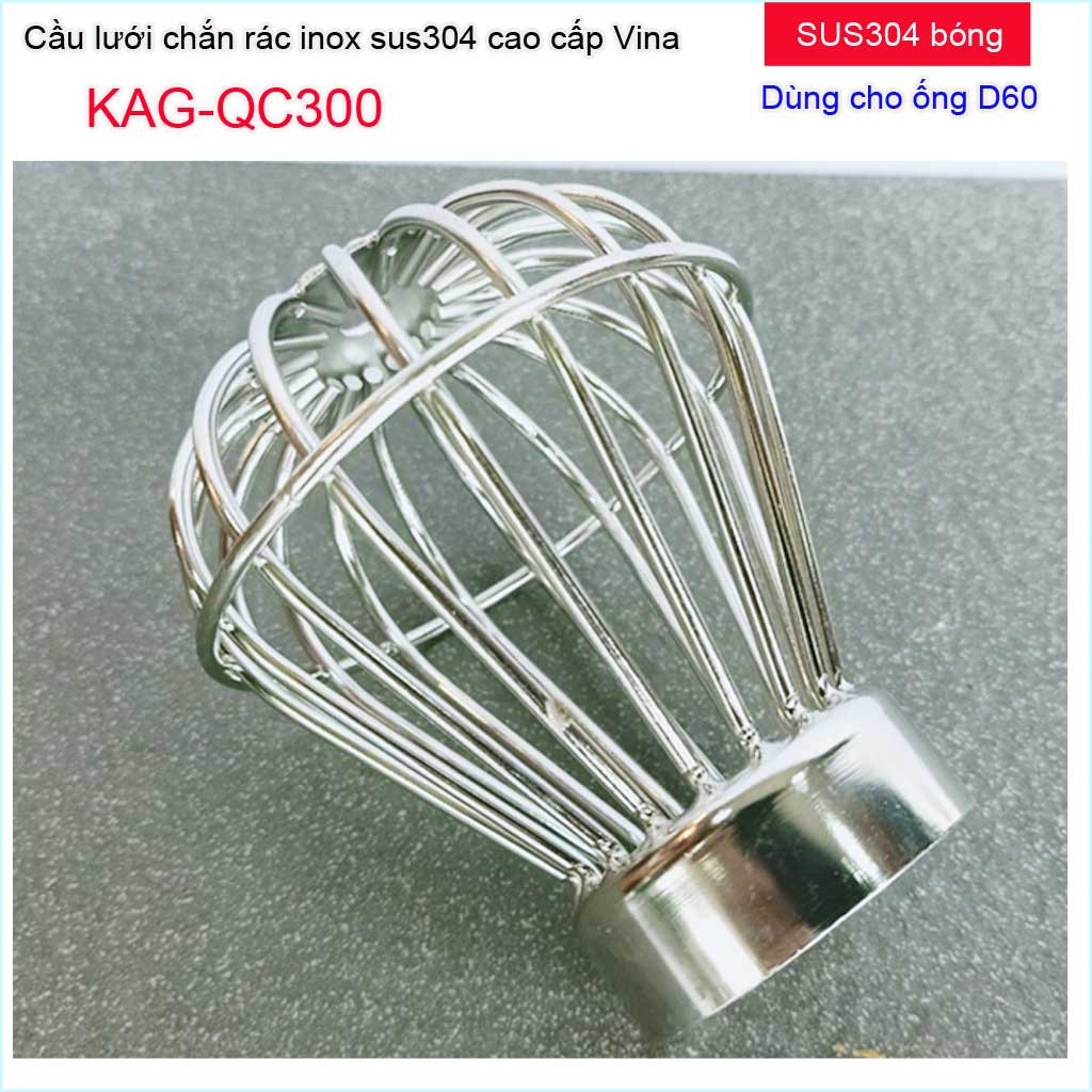 Cầu chắn rác sân thượng KAG-QC300 (ống D60), Cầu chặn rác Inox 304 đế thấp thả ống D60, cầu lưới lọc rác thoát nước mưa thoát nhanh sử dụng tốtChất liệu: Inox SUS304 Japan cao cấp, bền bỉ theo thời gian.