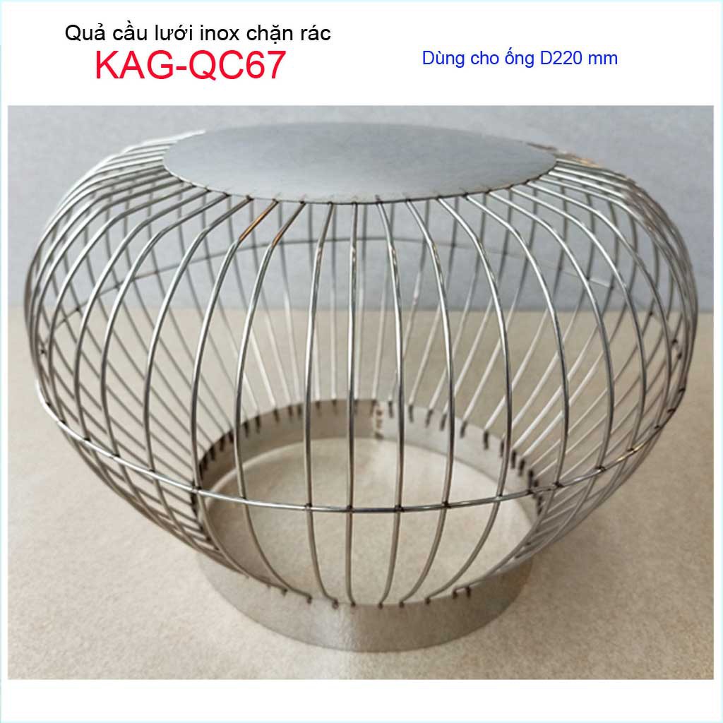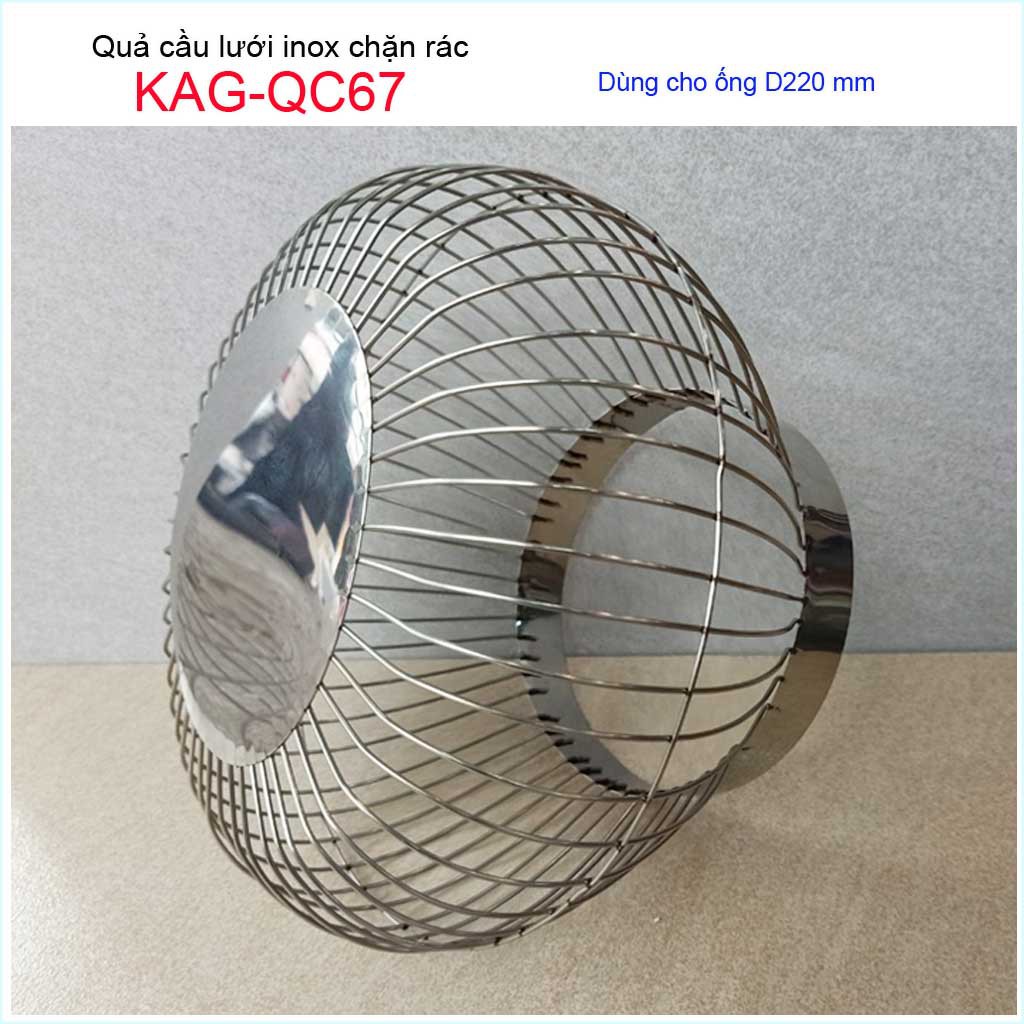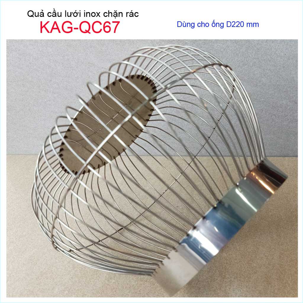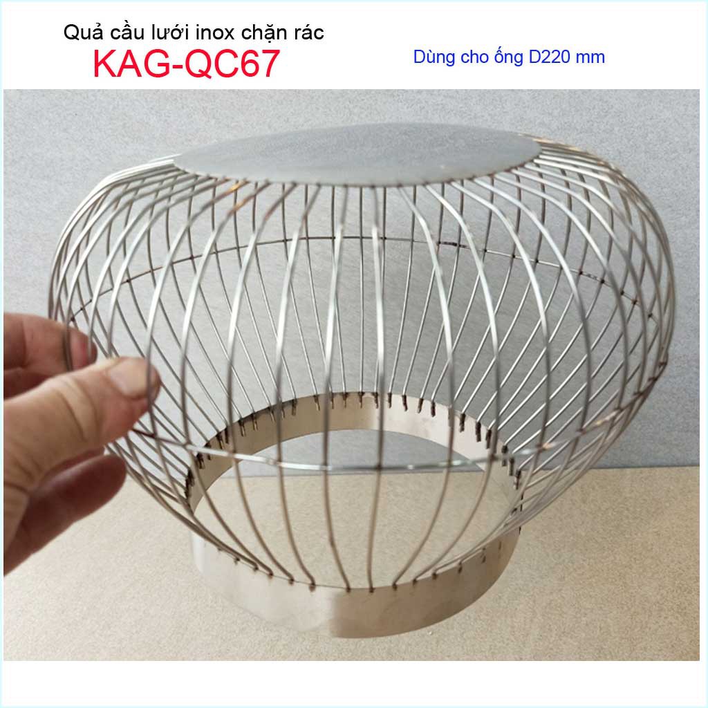 Cầu chặn rác sân thượng KAG-QC67, cầu chắn rác inox 201 thoát nước mưa thả ống D220 xả nhanh chặn rác tốtChất liệu: sản xuất Inox 201 Việt Nam