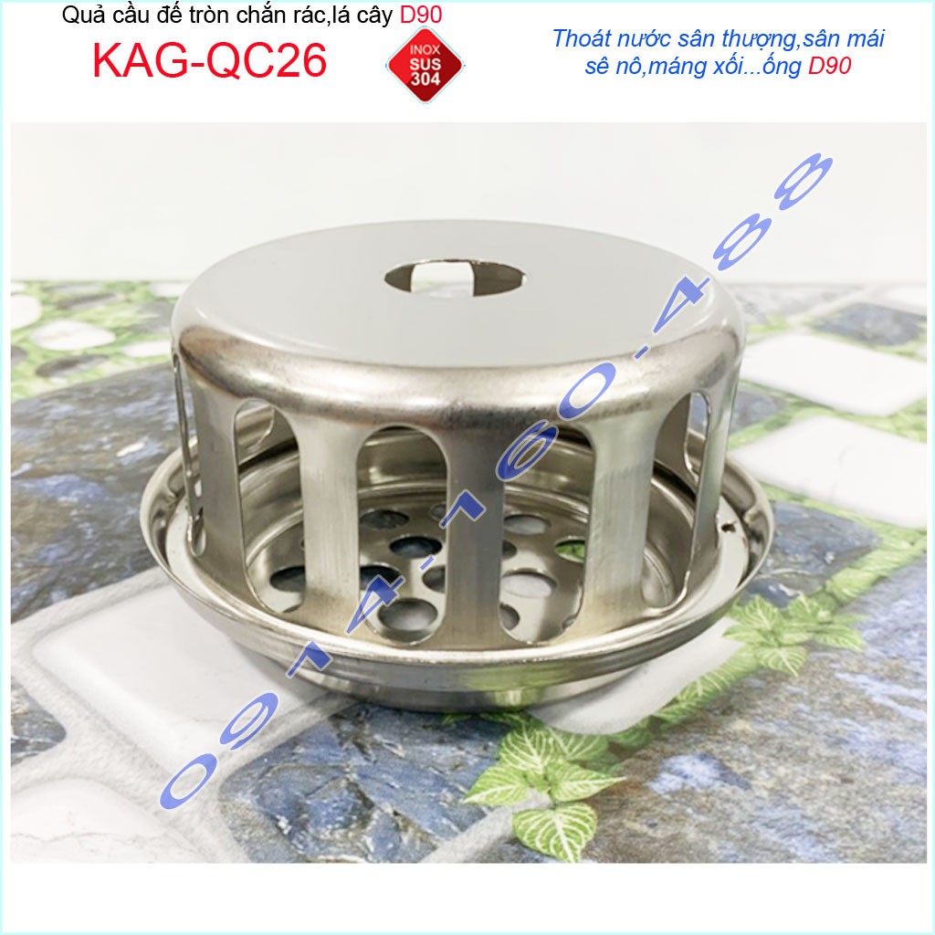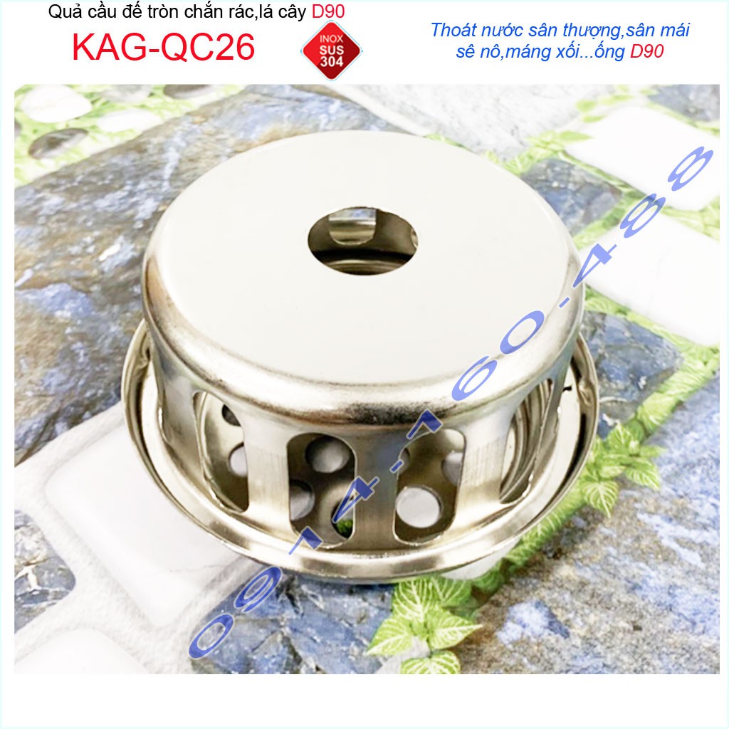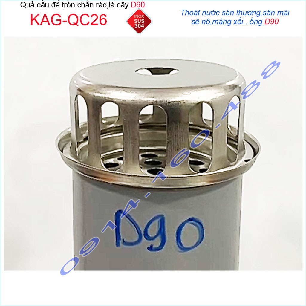 Cầu chắn rác sân thượng KAG-QC26 inox SUS304, cầu chặn rác đặt miệng ống D90, cầu thoát nước mưa thoát nước nhanh