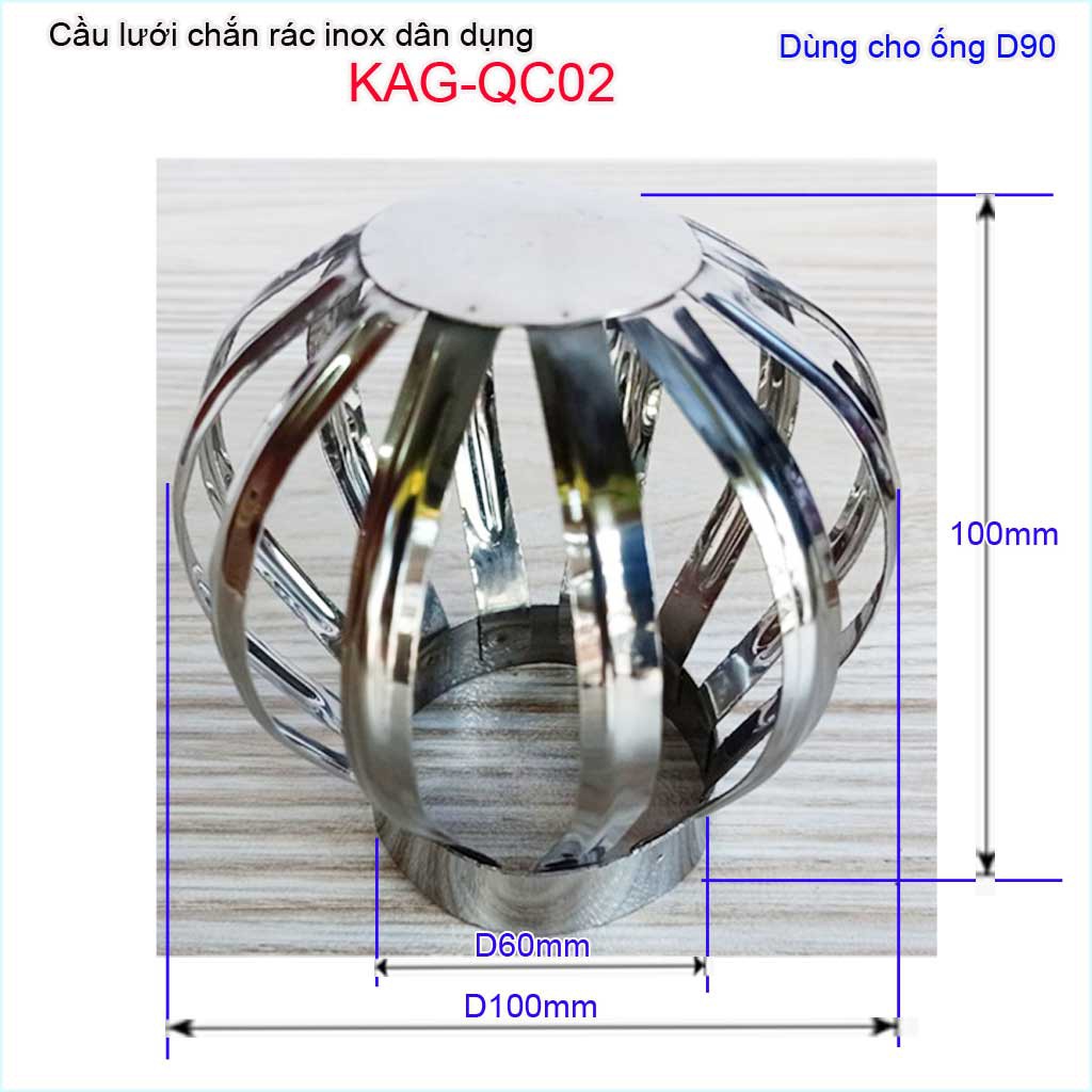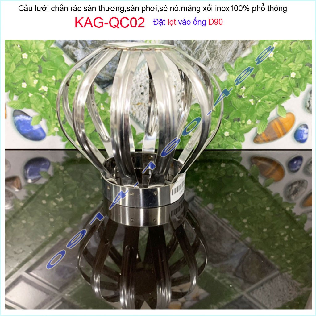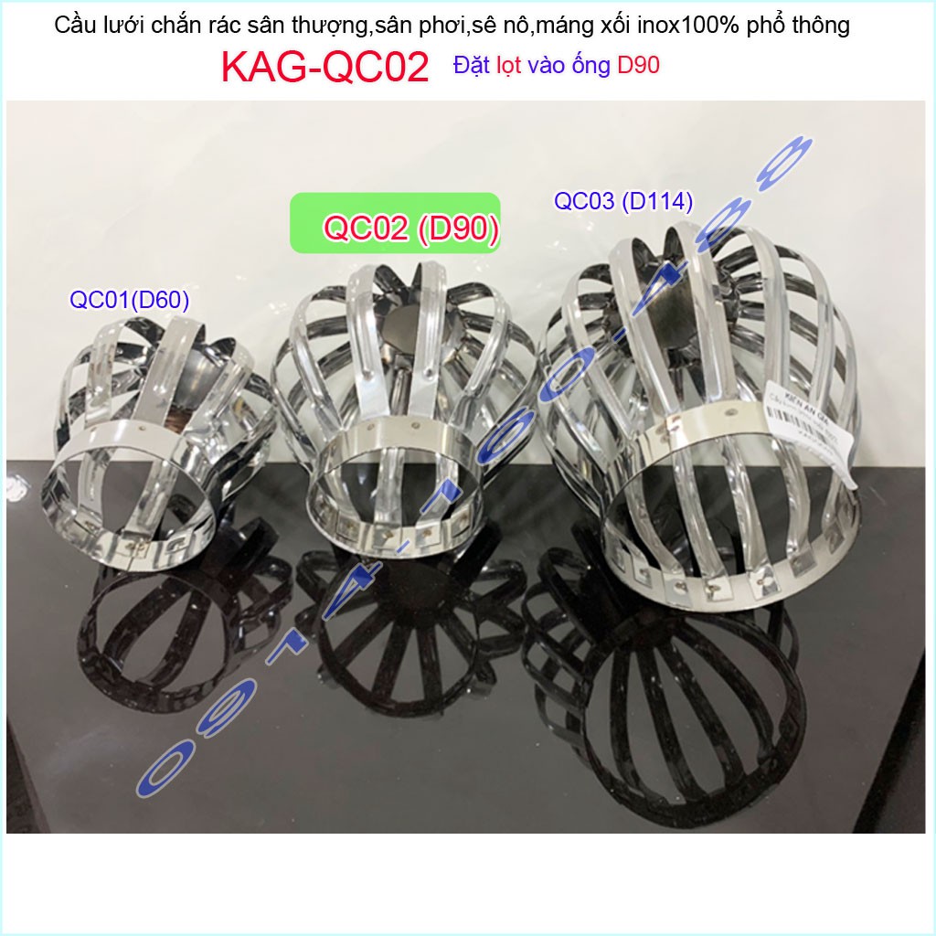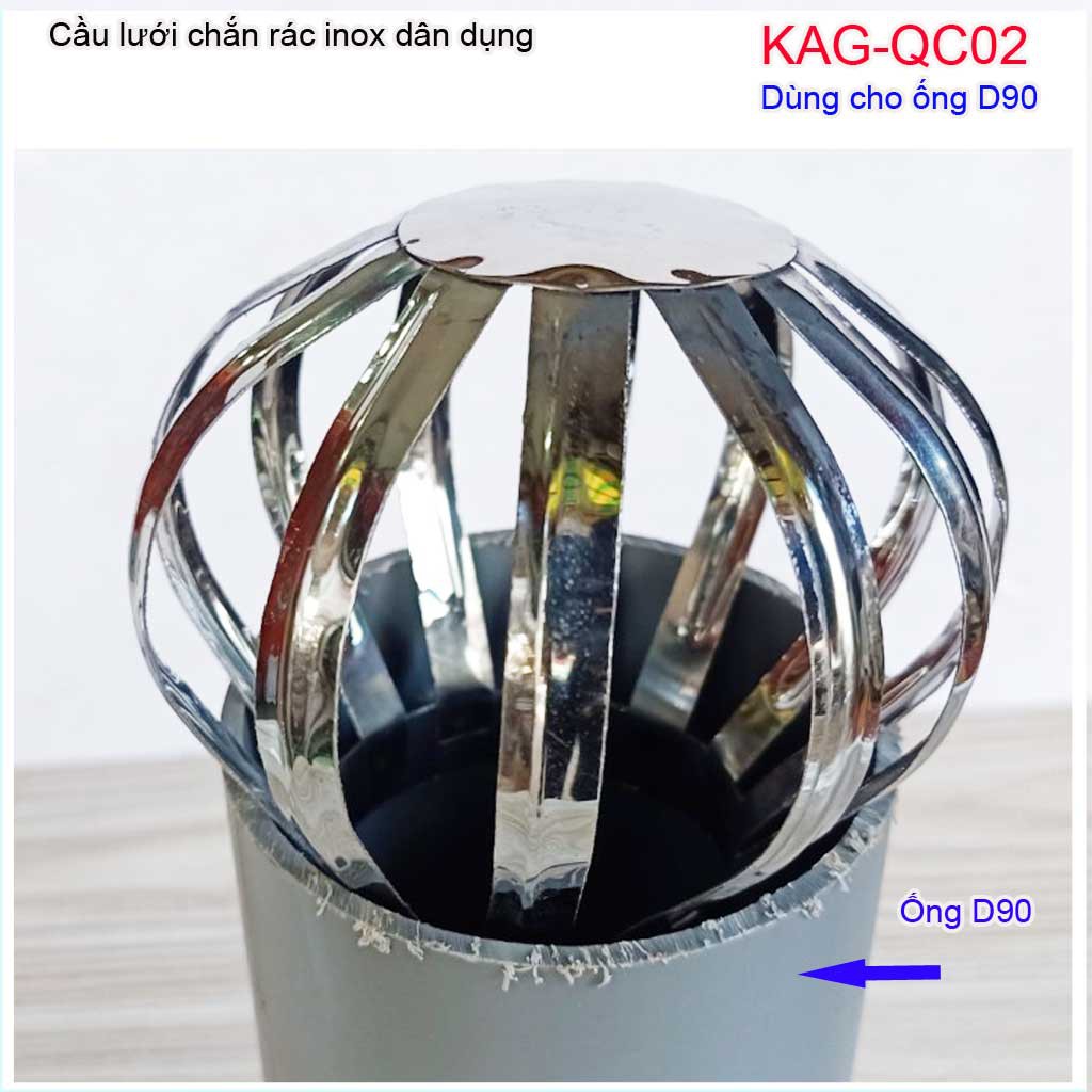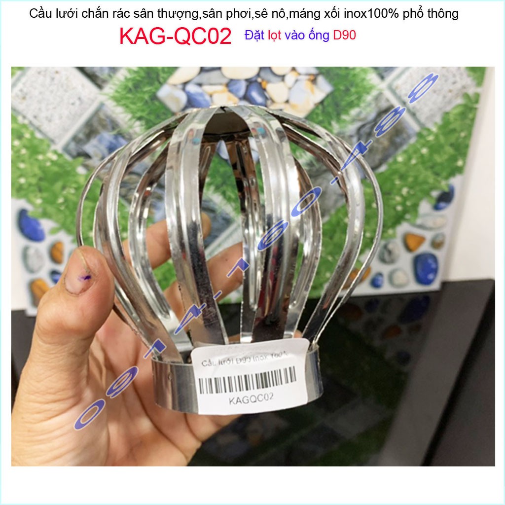 Cầu chắn rác thoát nước mưa D90 KAG-QC02 (ống 9cm),Cầu chặn rác sân thượng inox