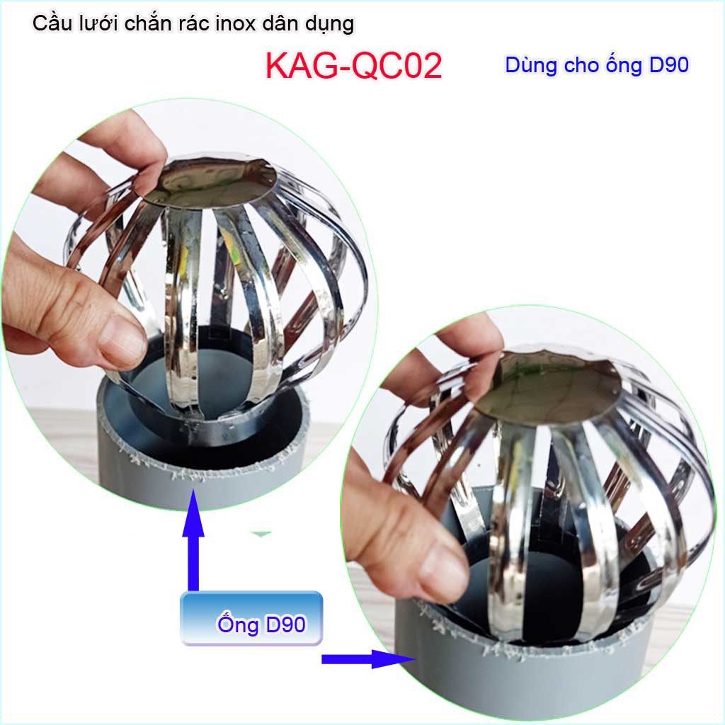 Giới thiệu Cầu chắn rác thoát nước mưa D90 KAG-QC02 (ống 9cm),Cầu chặn rác sân thượng inox