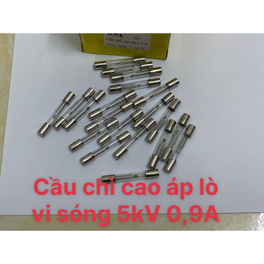 Cầu chì cao áp lò vi sóng là một bóng thủy tinh hình trụ với sợi dây đồng bên trong để nối mạch, có điện áp 5KV, dòng điện 0.9A