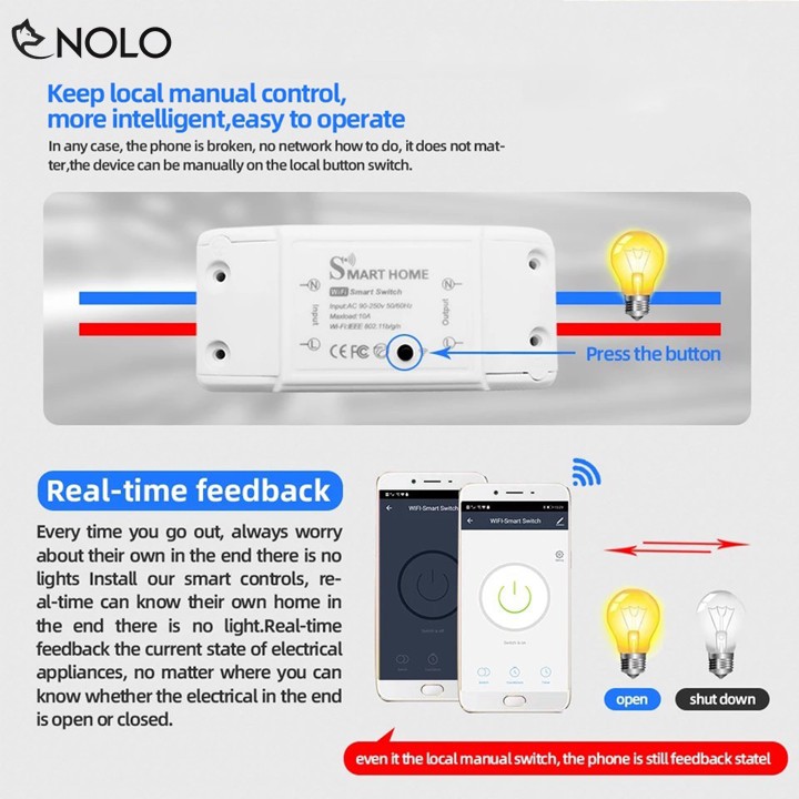 Thiết Bị Điện Gia Dụng > Thiết bị điều khiển từ xa || Cầu Dao CP 10A SmartHome Kết Nối Không Dây WIFI Qua Ứng Dụng SmartLife Và Tuya Của IOS Và AndroidCòn hàng