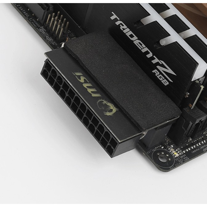 Cầu đảo góc chân nguồn 24pin mainboard có led logo ROGThiết kế vuông góc 90 độ giúp việc cắm dây được đẹp hơn.