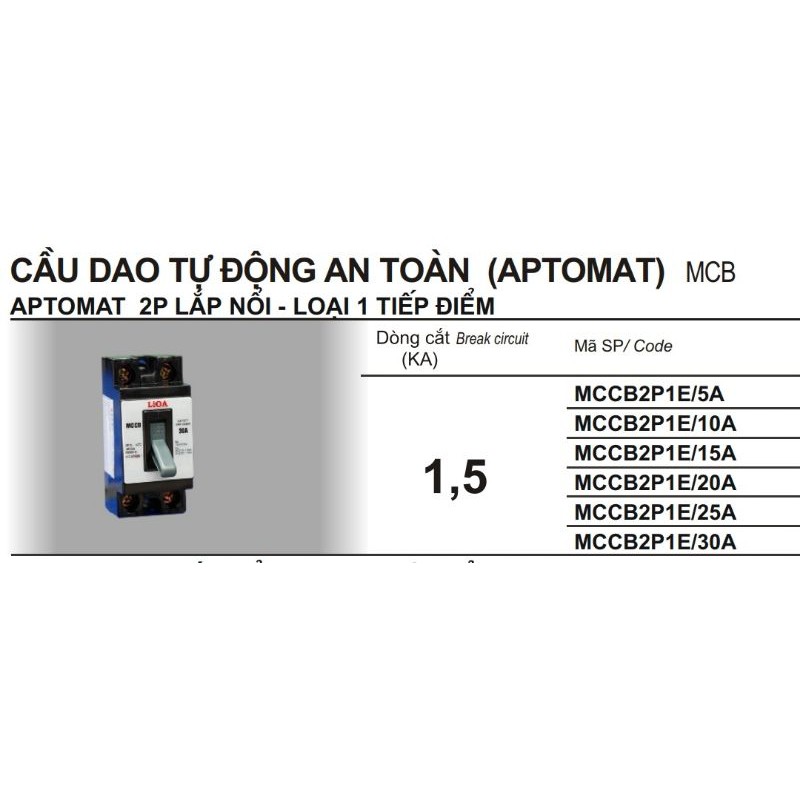 Cầu dao tự động Lioa có các thông số kỹ thuật👉 10A, 15A, 20A, 30A