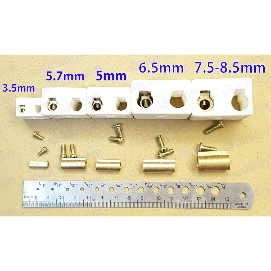 + 5.7mm: 32x28x20mm : lỗ domino đồng phi 5.7mm (độ lớn domino như loại 5mm nhưng lỗ lớn hơn, lượng đồng ít hơn)
