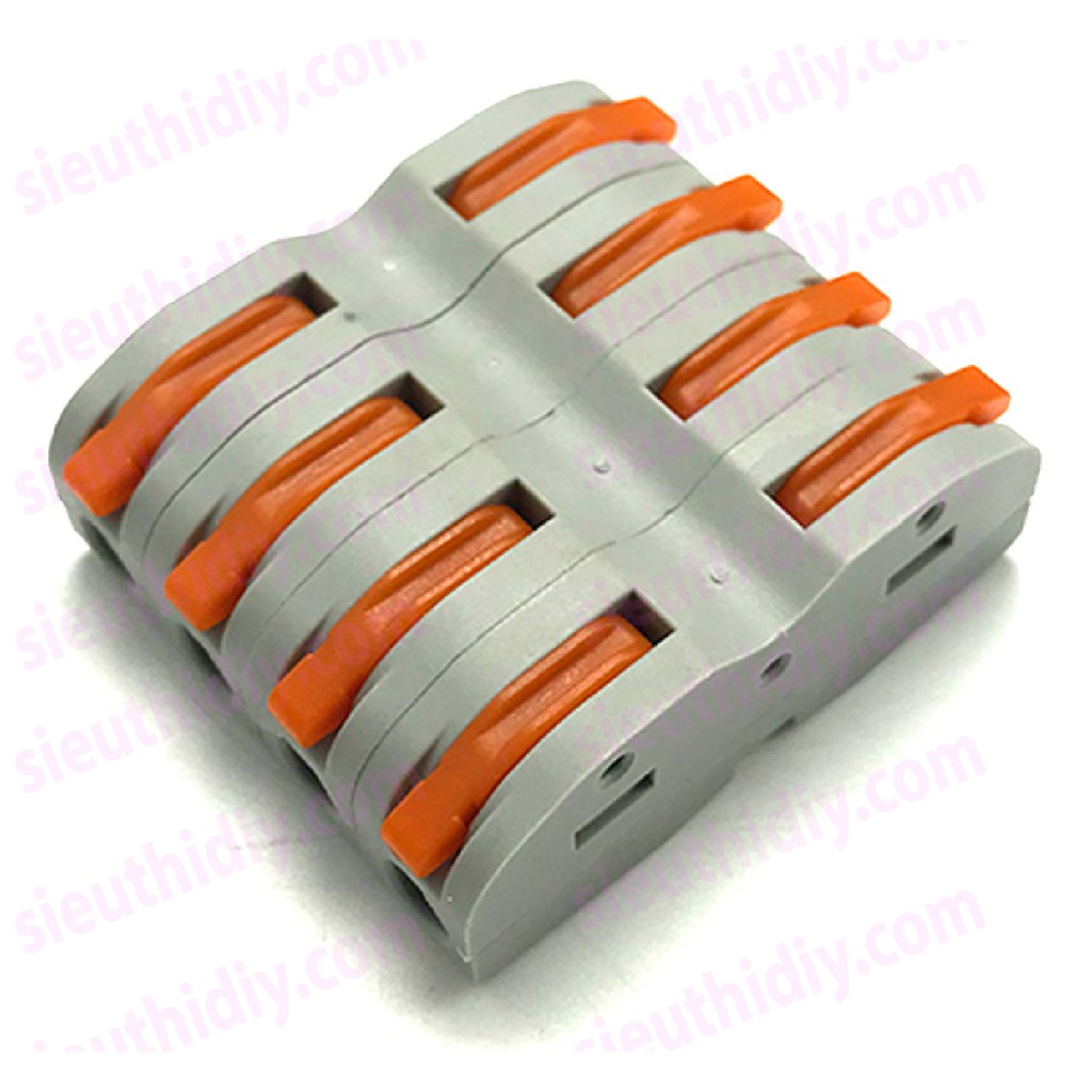 - Sử dụng: tuốt vỏ đầu dây điện cần nối nhanh -> gạt lẫy giữ lên mở rộng lỗ kết nối -> đút đầu dây điện đã tuốt vỏ vào -> bấm lẫy giữ xuống.