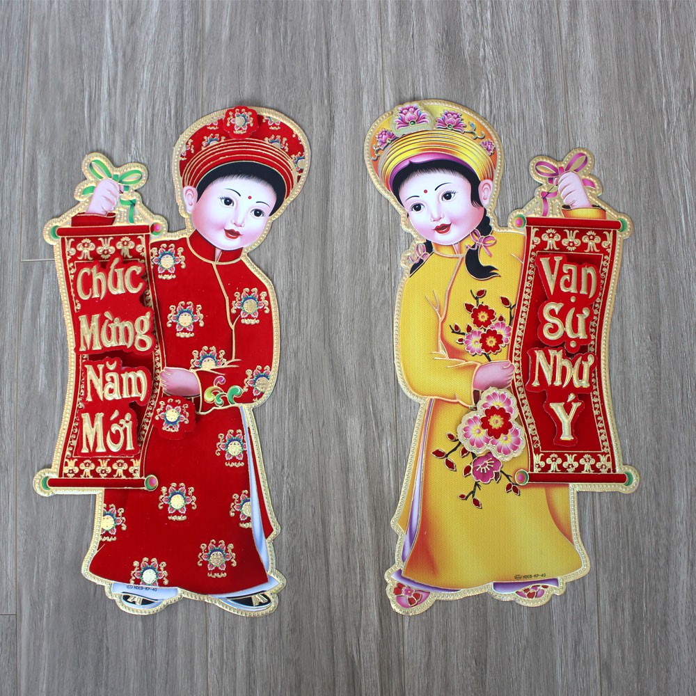 Câu đối ngày tết, decal trang trí tết với nhiều câu đối hình con trâu năm 202102 Cô gái mặc áo dài : Chúc mừng năm mơi- Vạn sự như ý
