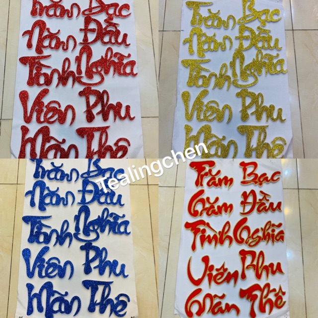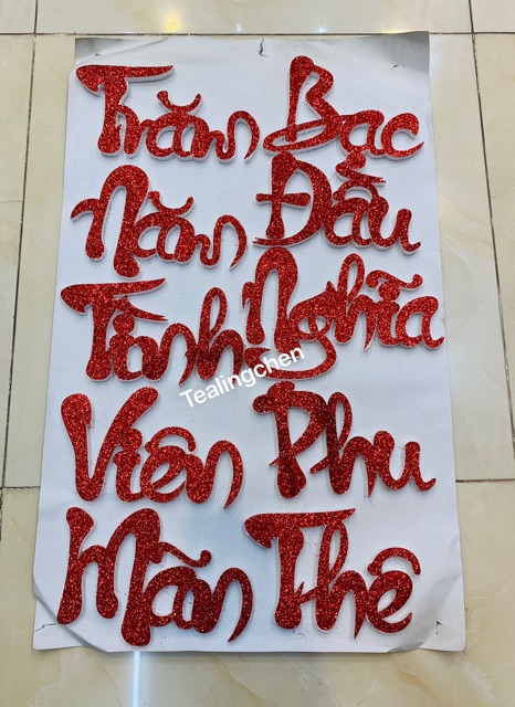 Chữ xốp dán tường trang trí đám cưới gồm đầy đủ các chữ như:Mẫu 1: Trăm Năm Tình Viên Mãn