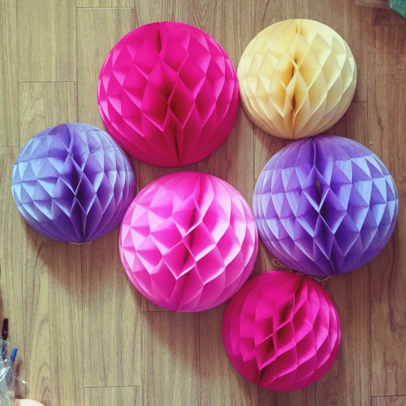 Quả cầu giấy xếp 25cm treo trang trí với nhiều màu sắc dùng trang trí phòng, quán, tiệc...Sản phẩm có thể gấp gọn khi không sử dụng.