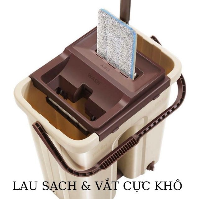 - Thùng 2 ngăn : 1 ngăn vắt khô tự động - 1 ngăn chứa nước để giặt cây lau