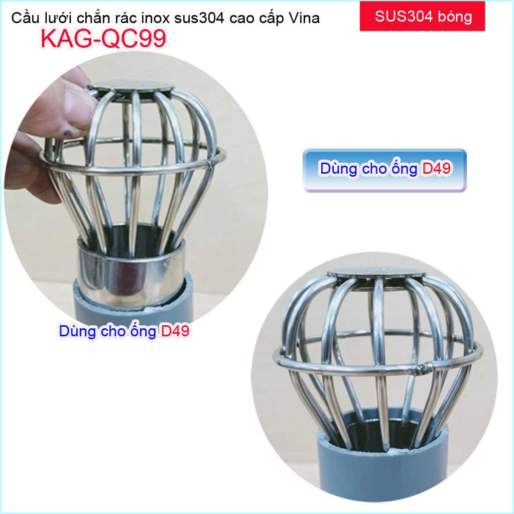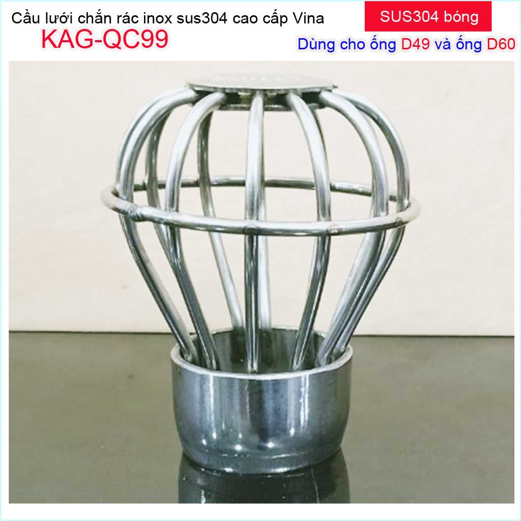 Cầu lưới Inox 304 dày, cầu chặn rác thoát nước mưa D49-D60 KAG-QC99 thoát nước nhanh cầu chắn rác sân thượngChất liệu: Inox SUS304 Japan cao cấp, bền bỉ theo thời gian.