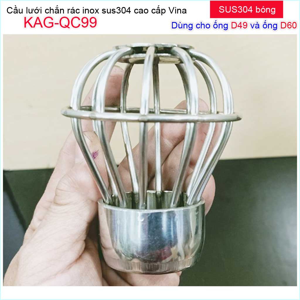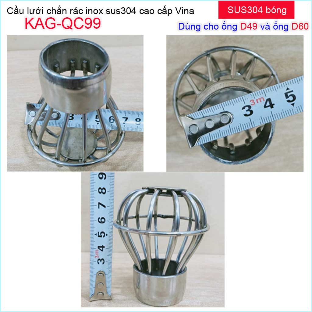 Cầu lưới Inox 304 dày, cầu chặn rác nước mưa D49-D60 KAG-QC99 thoát nước nhanh