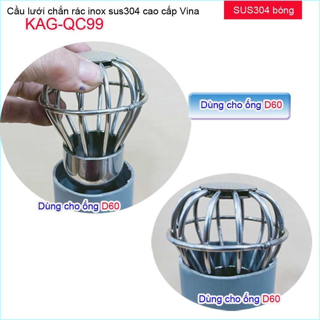Giới thiệu Cầu lưới Inox 304 dày, cầu chặn rác nước mưa D49-D60 KAG-QC99 thoát nước nhanh