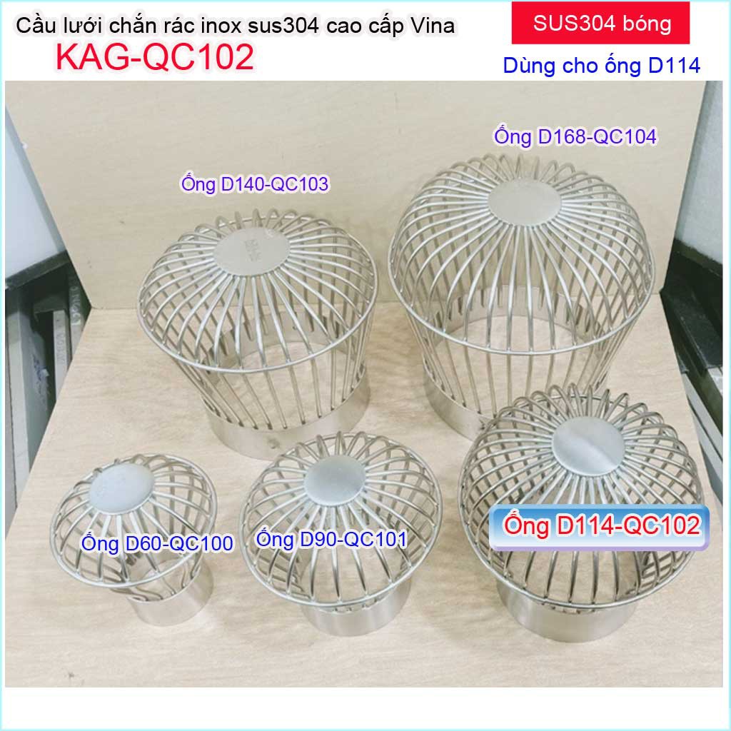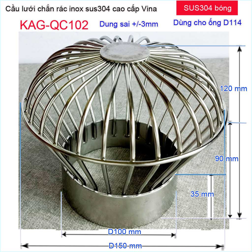 Cầu lưới Inox 304 dày chắn rác sân thượng KAG-QC102-D114-140, cầu chặn rác thoát nước mưa thoát nhanh sử dụng tốt