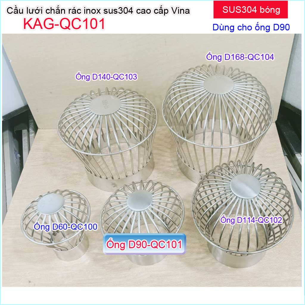 Cầu lưới Inox 304 dày, cầu chặn rác thoát nước mưa D90 KAG-QC101 thoát nước nhanh cầu chắn rác sân thượngChất liệu: Inox SUS304 Japan cao cấp, bền bỉ theo thời gian.