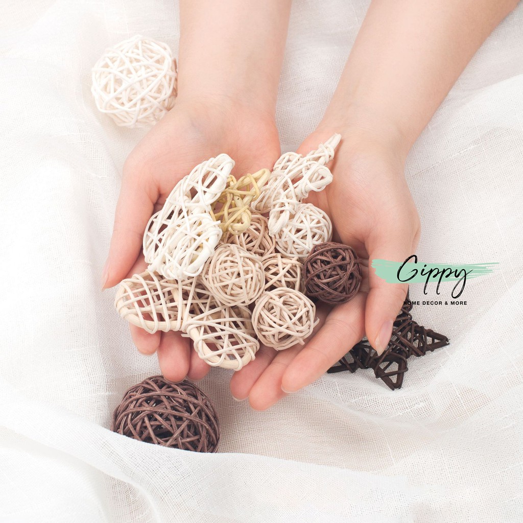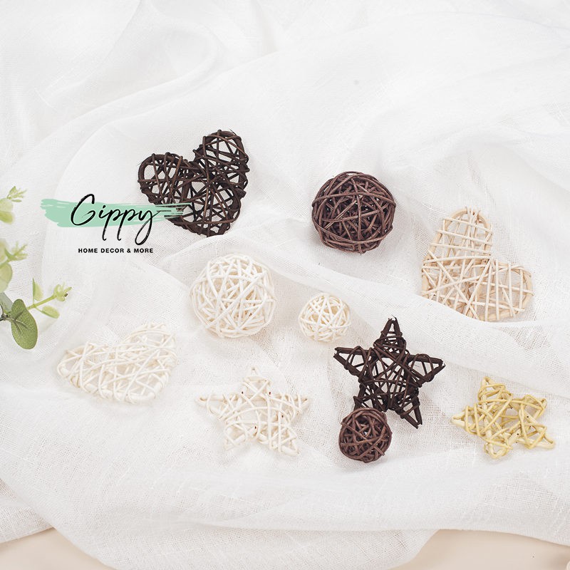 COMBO cầu mây, ngôi sao, trái tim trang tríKích thước: trái tim 6.5cm - ngôi sao 6cm - cầu mây to 5cm - cầu mây nhỏ 3cm (+/- 0.5cm)