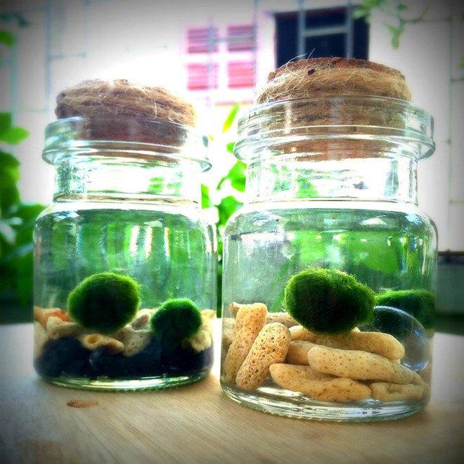 - Marimo còn màu xanh là nó còn sống, bạn có thể nuôi chung marimo với cá, hoặc mix bình nuôi em nó với đá thủy tinh hay vài vật trang trí để cho đẹp.