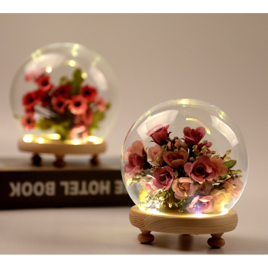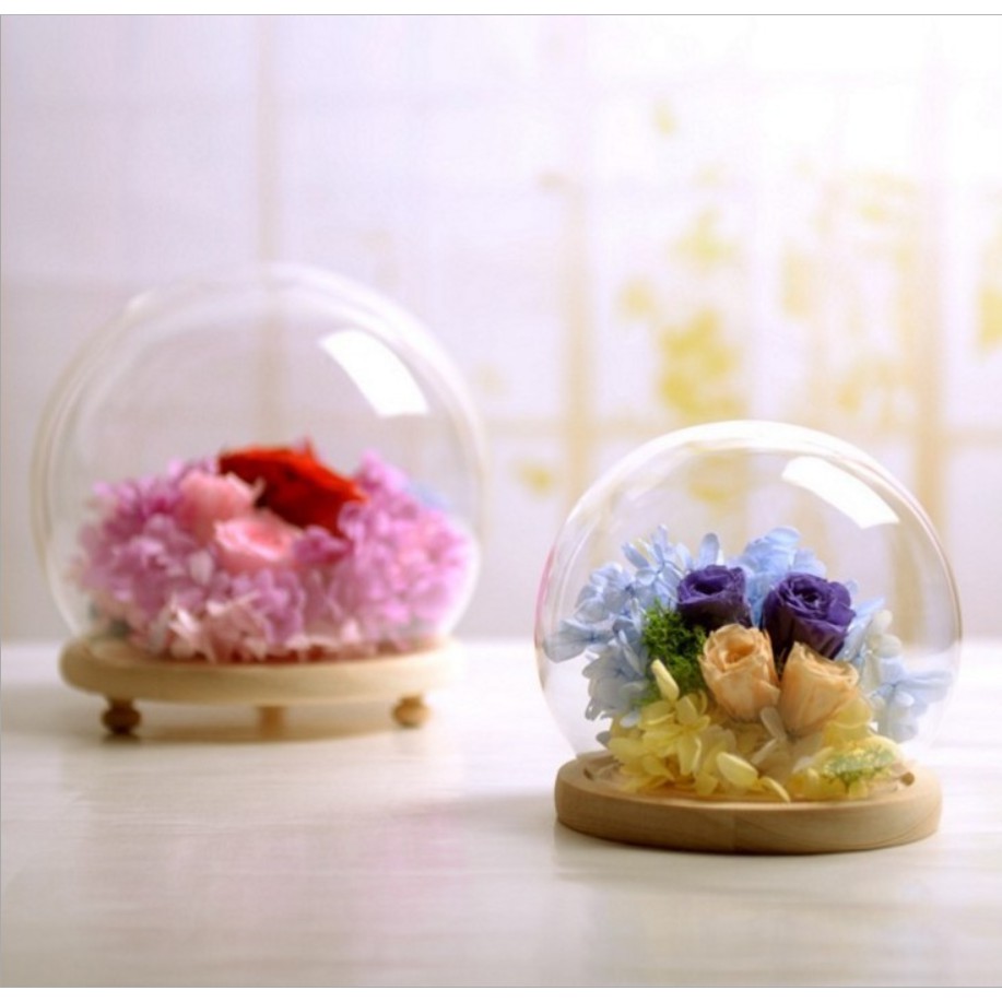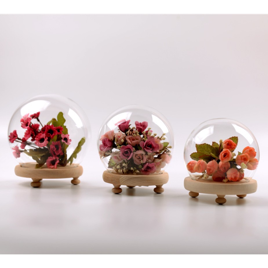 Giới thiệu Cầu thủy tinh đế gỗ gắn đèn LED trang trí mô hình, hoa khô, tiểu cảnh hoặc trưng bày đồ trang sức, DIY