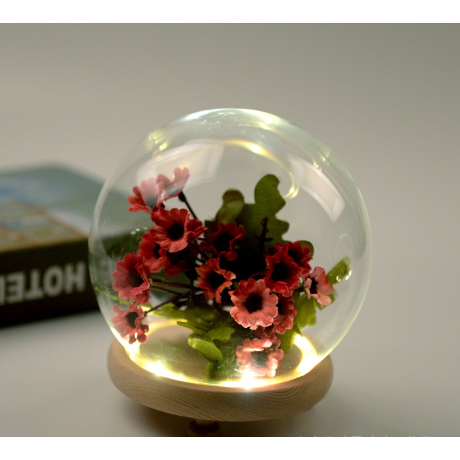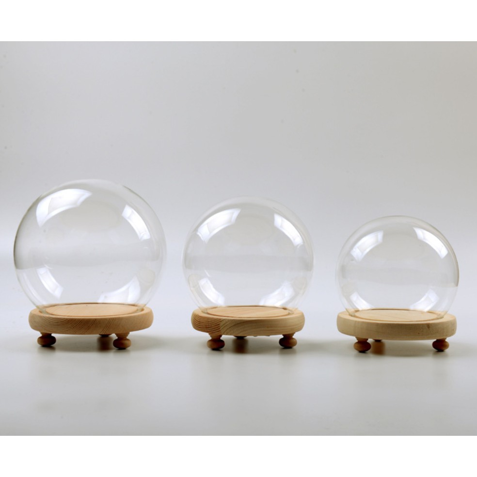 Cầu thủy tinh đế gỗ gắn đèn LED trang trí mô hình, hoa khô, tiểu cảnh hoặc trưng bày đồ trang sức, DIY