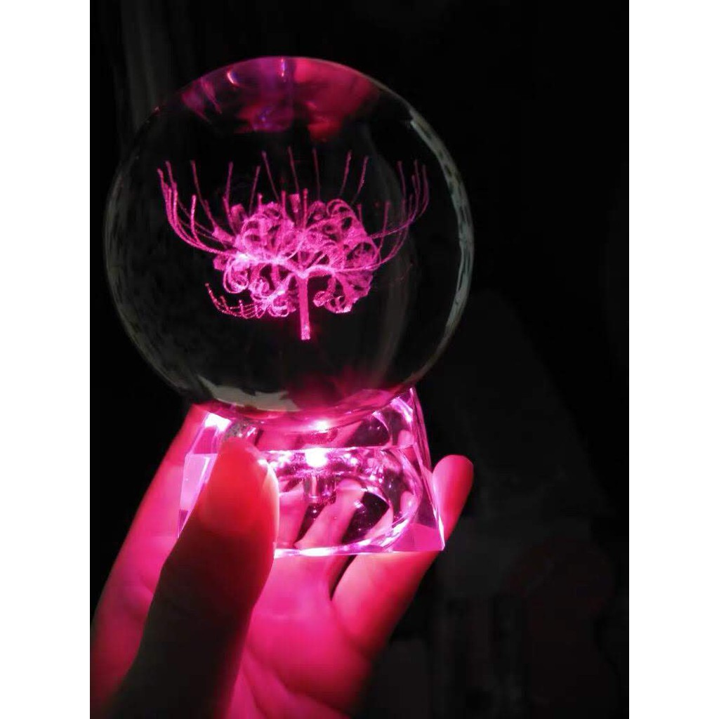 Quả cầu thủy tinh trong suốt mẫu hoa bỉ ngạn, bên dưới có đèn đổi màu. hàng đi tặng hoặc để bàn.
