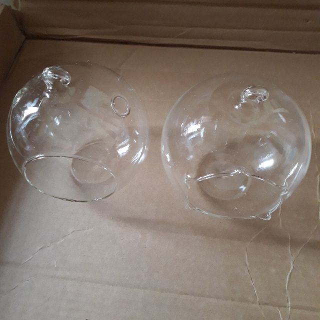 Quả cầu thủy tinh tròn treo đường kính 12cm treo dây hoặc treo kệ móc sắt dùng trồng cây không khí, sen đá, bày tiểu cảnh, cắm bông hoa, treo nến, làm bể cá...Quả cầu có thiết kế đế bằng có thể để bàn được, phía trên có lỗ móc treo.