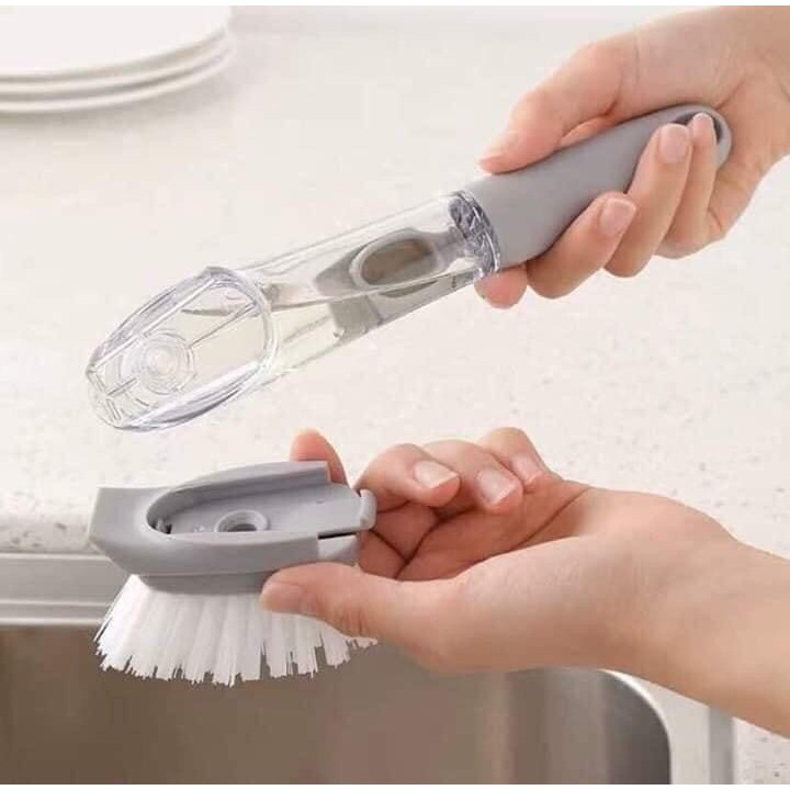 ➡ Sử dụng dễ dàng: tháo miếng cọ, đổ nước rửa vào phần chứa ở tay cầm, lắp lại & không lo hết nước rửa.