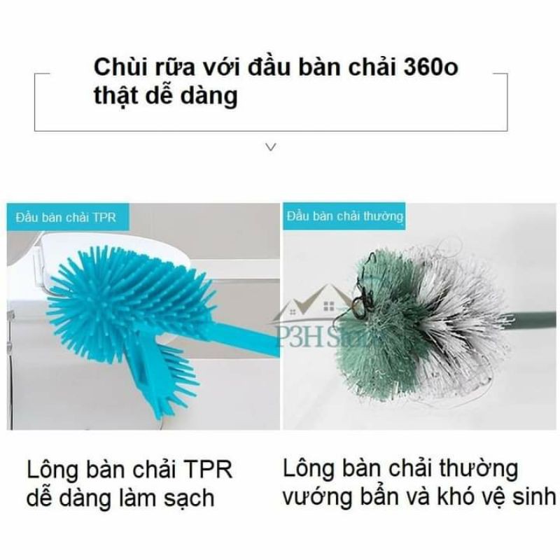 Thiết kế thông minh: đầu chổi có thêm bộ phận phụ để dễ dàng móc vệ sinh sâu bên trong toilet giúp loại bỏ nhanh chóng những vết bẩn cứng đầu trong góc khuất. Giá đỡ chứa chổi thiết kế đẹp gọn gàng, tránh bị đổ làm bẩn cây lau, thêm phần treo đầu cán tiện lợi.