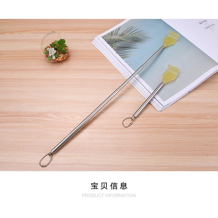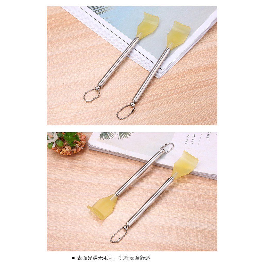 Cây gãi ngứa bàn tay nhựa chiều dài thay đổi đượcNgứa là phải gãi là qui luật tất yếu của cuộc sống. Tuy nhiên, không phải lúc nào cũng có thể gãi được: Ngứaở lưng, tay ngắn, viêm khớp, đau cơ... Một cây gãi lưng inoxthu ngắnnhư 1 cây viết nhỏ gọn, có thể dễ dàng mang theo(đi làm, du lịch, vệ sinh...)là giải pháp tuyệt vời