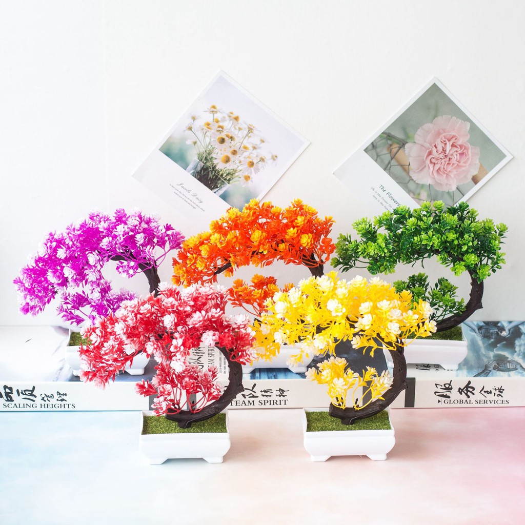 Mến chào quý khách! Cảm ơn quý khách đã click vào trang sản phẩm của shop Hoa giả NHÀ MIN-https://shopee.vn/hoacocaytrangtriCÂY GIẢ BONSAI HOA RỰC RỠ (kèm chậu)