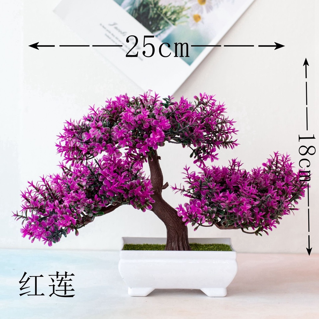 CÂY GIẢ BONSAI HOA RỰC RỠ kèm chậu - Chậu cây Phú Quý Cát Tường trang trí, để bàn - Hoa giả may mắn tài lộc
