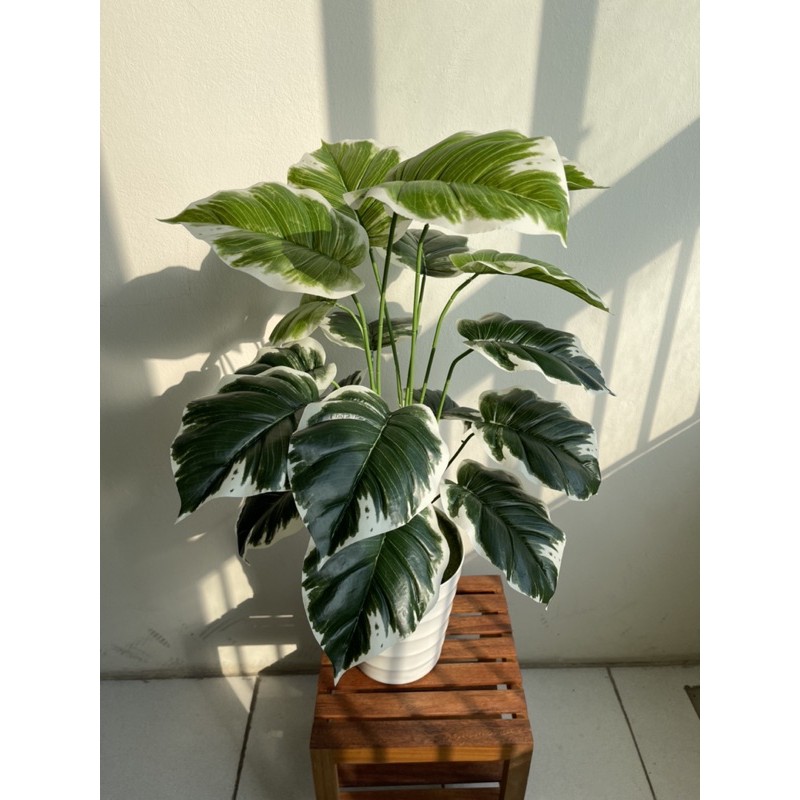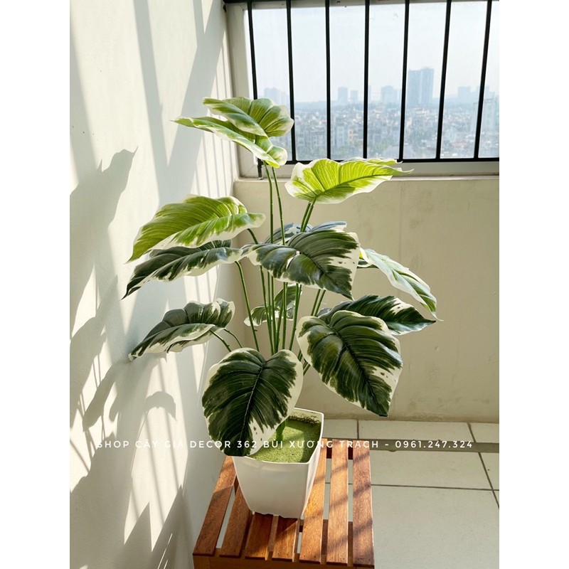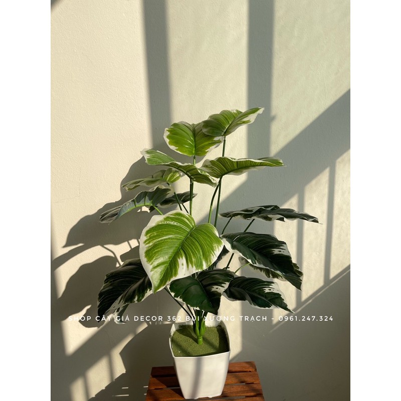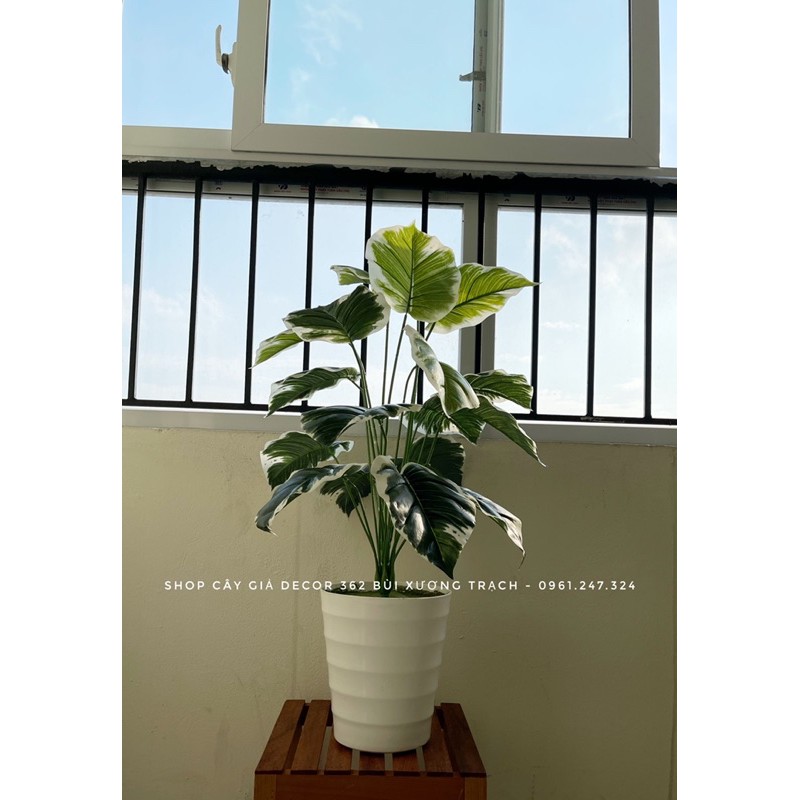 CÂY GIẢ - CÂY TRẦU BÀ VIỀN TRẮNG 75Cm- Mỗi cây có 18 lá, kích thước lá 17x20cm