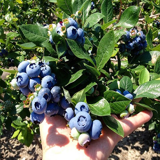 Quả việt quất có màu xanh đen sậm mọc thành chùm tròn và mọng. Khi ăn bạn sẽ cảm nhận được vị ngọt thanh đặc trưng rất dễ gây nghiện. Đặc biệt quả việt quất khá sai nên nếu trồng đúng kĩ thuật 1 cây bụi có thể cho đến 6kg quả.