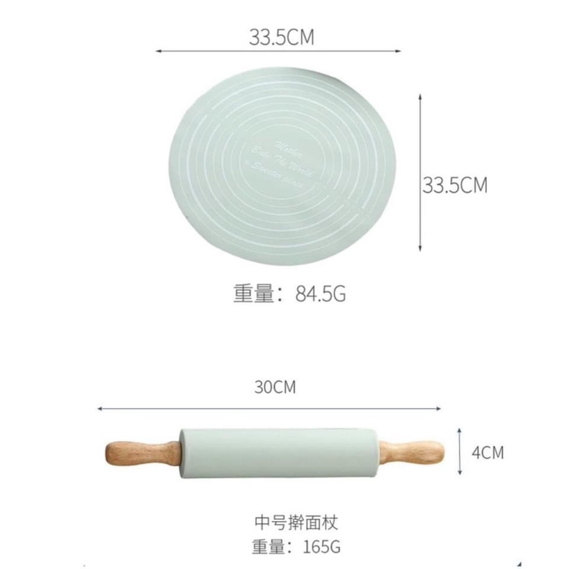 Bộ Cây Lăn Bột Cán Gỗ Và Thảm Nhào Bột Làm Bánh Bằng Silicon Dày Chống DínhBộ dụng cụ không thể thiếu cho các chị em đam mê hay tập làm bánh. Dùng em thảm silicon này cực thích luôn vì không làm dính bột, trên thân thảm có số đo để các chị em có thể chia kích cỡ bánh