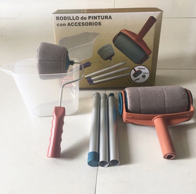 - Sản phẩm gồm có: 1 con lăn sơn dài . 1 con lăn gốc cạnh .1 chậu pha sơn . 1 que nối dài