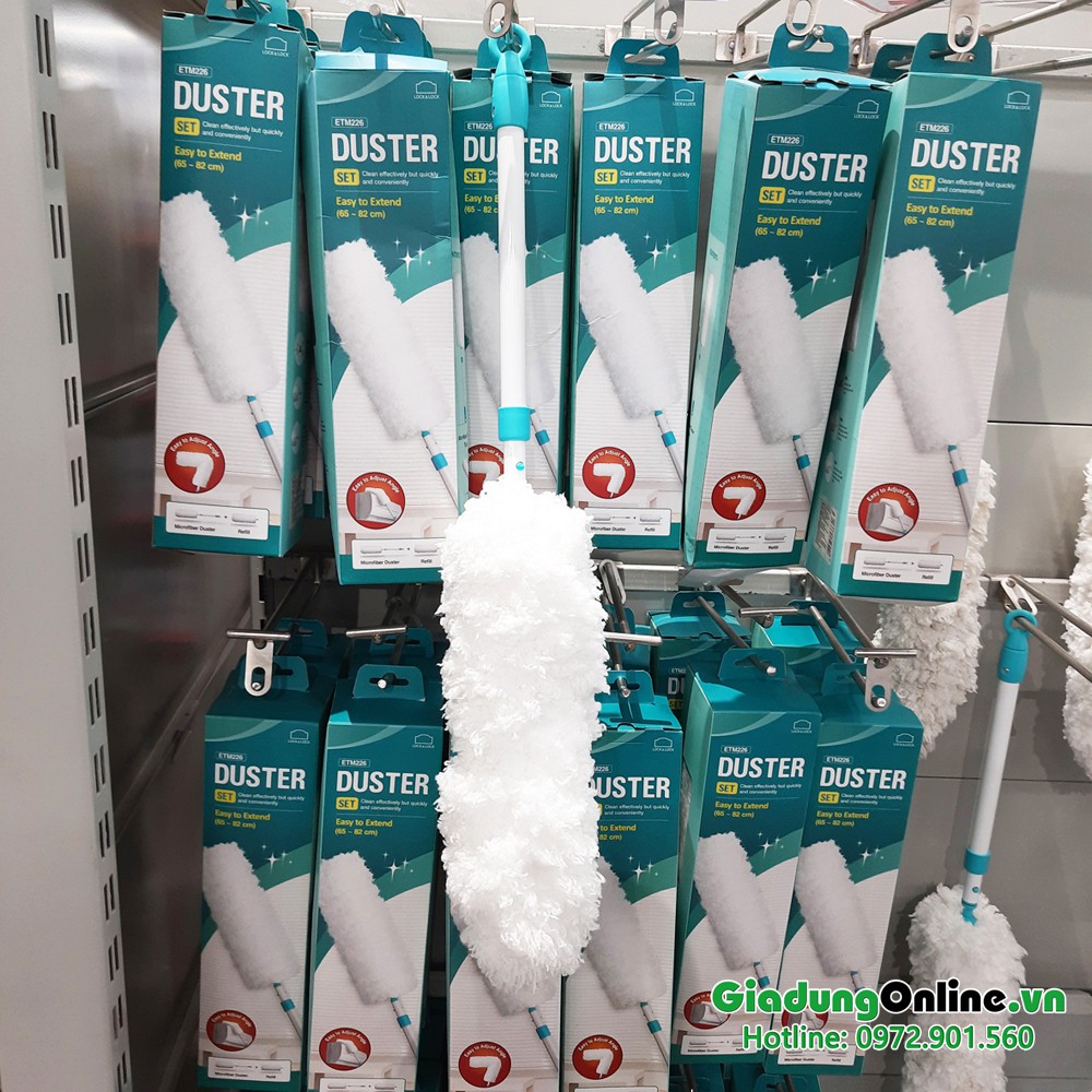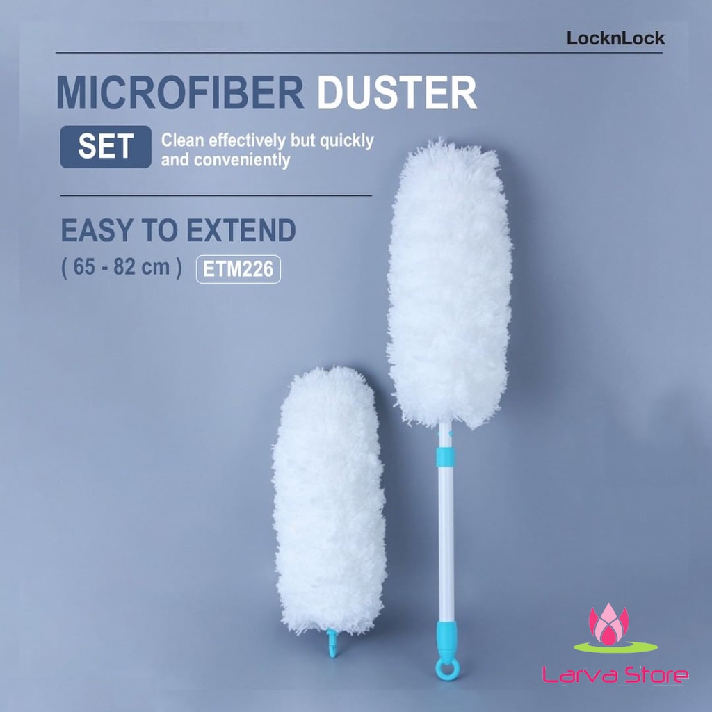 - Bộ Cây Lau Bụi Đa Năng Microfiber Duster Và Đầu Lau Thay Thế Lock&Lock ETM226 được làm từ sợi microfiber siêu thấm, mềm mại, giúp bạn dễ dàng lau bụi bàn ghế, xe hơi, trần nhà, đặc biệt là những nơi góc cạnh ở trên cao như tủ quần áo, tủ lạnh.