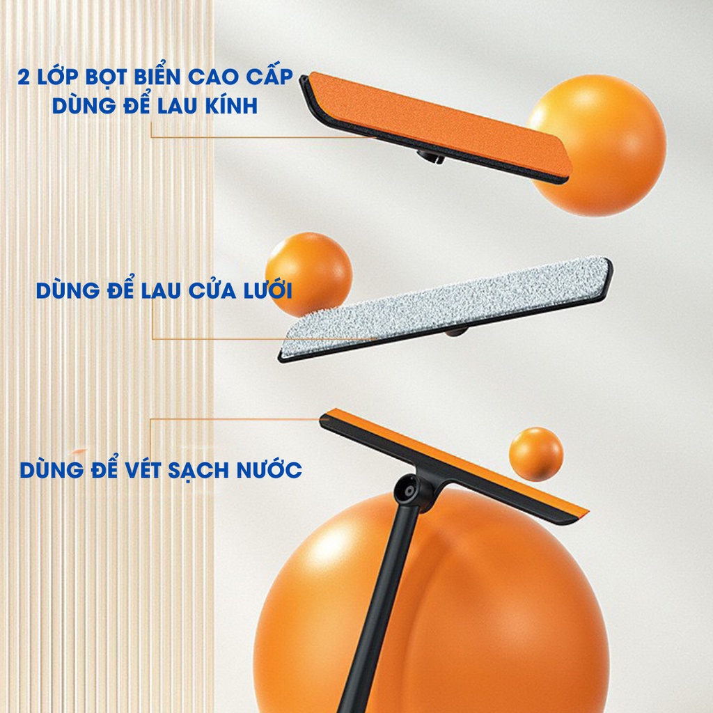 Bộ Cây Lau Kính,Cửa Lưới ,Gạt Nước Đa Năng 3 IN 1 K123