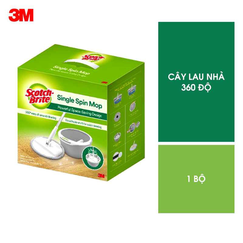 Giới thiệu Bộ cây lau nhà 360 độ Scotch Brite 3M Thế hệ mới bông lau microfiber lấy sạch bụi bẩn